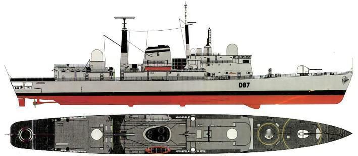 英国“谢菲尔德”级驱逐舰“谢菲尔德”级驱逐舰是英国于20世纪70年代建造的导弹驱逐舰,也称为42型驱逐舰,一共建造了16艘(英国14艘,阿根廷2艘),目前英国海军装备的14艘已经全部退役,阿根廷海军仍有1艘在役。“谢菲尔德”级驱逐舰为高干舷、平甲板型的双桨双舵全燃动力装置驱逐舰,船体线型可在静水和风浪中都具有较佳的巡航速度和最高航速。武器装备:1座双联装GWS30“海标枪”防空导弹发射装置、2座三联装324毫米鱼雷发射管、1门113毫米Mk 8舰炮、2门20毫米GAM-B01舰炮、2座“密集阵”近程防御武器系统。动力装置:2具奥林巴斯TM3B燃气轮机、2具泰恩RM1A巡航燃气轮机。“谢菲尔德”级驱逐舰的出现是为了填补被取消的更大型的“布里斯托尔”级驱逐舰(82型)的空缺。该级舰一共建造了16艘,其中2艘出售给阿根廷,14艘装备于英国海军。首舰“谢菲尔德”号于1970年5月开始建造,1972年6月下水,1975年2月服役。到1985年,14艘“谢菲尔德”级驱逐舰均已进入英国皇家海军服役,母港均为朴次茅斯。截至2016年2月,英国海军装备的“谢菲尔德”级驱逐舰已经全部退役,而阿根廷海军尚有1艘在役。为了降低成本,英国军方限制了“谢菲尔德”级驱逐舰的排水量。为了增加武器和电子设备,又简化了全舰的壳体结构,采用了薄壳型舰体,因此结构薄弱,容易被击穿和受热起火。“谢菲尔德”级驱逐舰采用全燃交替动力装置(COGOG),第一批和第二批驱逐舰采用2具奥林巴斯TM3B燃气轮机(每台持续功率18.38兆瓦)和2具泰恩RM1A巡航燃气轮机(每台持续功率3.64兆瓦)。第三批驱逐舰采用2具奥林巴斯TM3B燃气轮机和2具泰恩RM1C巡航燃气轮机(每台持续功率3.92兆瓦)。“谢菲尔德”级驱逐舰的武器装备包括1座双联装GWS30“海标枪”防空导弹发射装置,2座三联装324毫米鱼雷发射管,1门113毫米Mk 8舰炮,2门20毫米GAM-B01舰炮,2座“密集阵”近程防御武器系统等。该级舰的舰尾还设有飞行甲板,可携带1架韦斯特兰公司的“大山猫”直升机。|