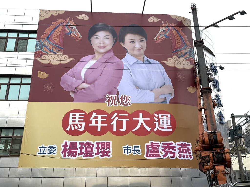 卢秀燕与杨琼瑛合影看板,支持杨琼瑛选立委。