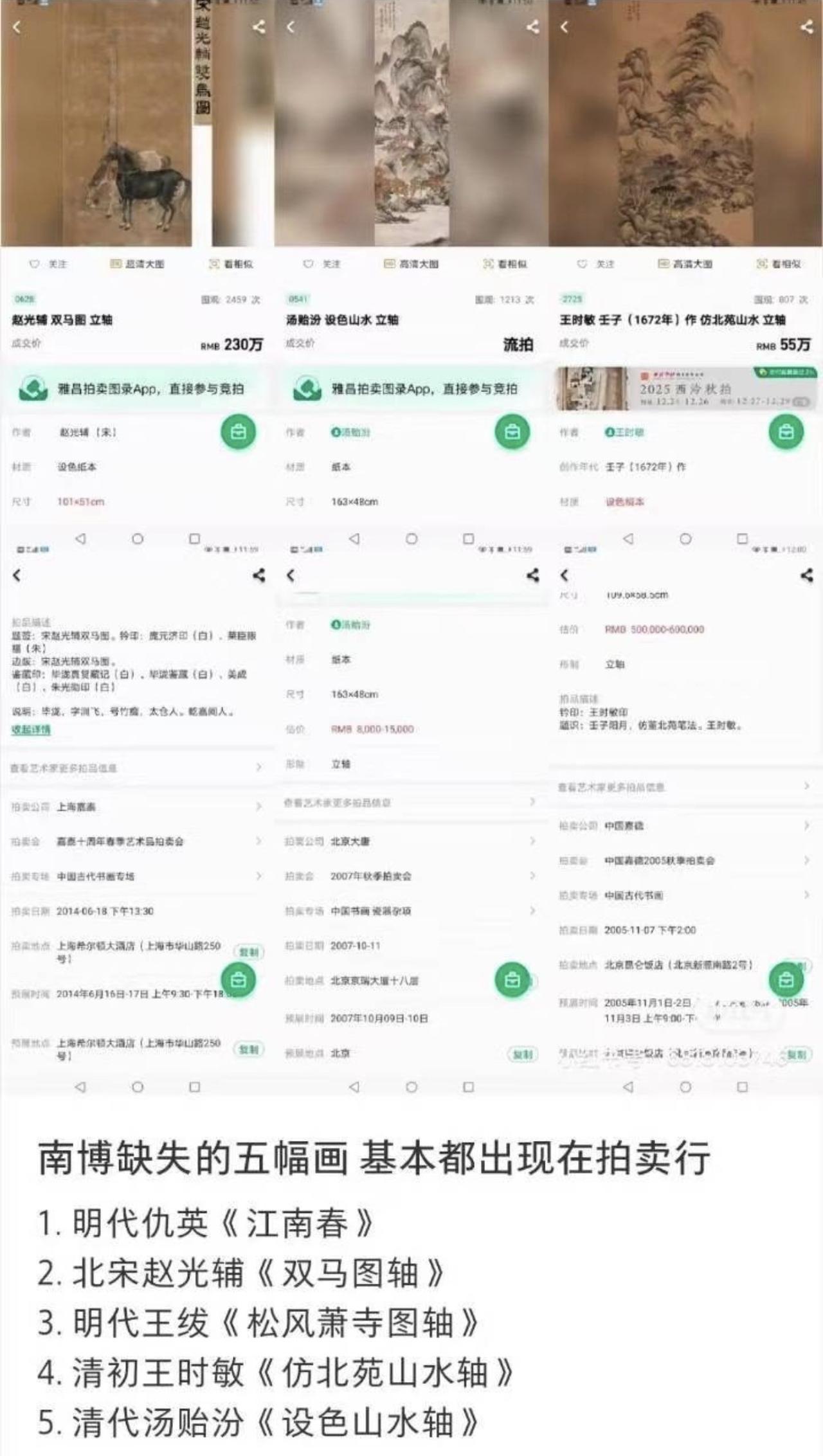 南京博物院这事,深挖下去大有门道,矛盾也越来越多!声称消失的五件文物是赝品,可结果有四件被扒出拿去拍卖了,剩下那件估计也是同样的情况。既然是假的还拿去售卖,知假卖假,这难道不算诈骗吗?况且售卖金额还不小。这种情况是不是可以报警了?这事儿就不查一查吗?这合理吗?越琢磨越让人窝火!以后大家不管贫富,千万别再捐赠物品了,捐出去那就是做冤大头,成免费供应商了。 [抠鼻][抠鼻][抠鼻]南京博物院