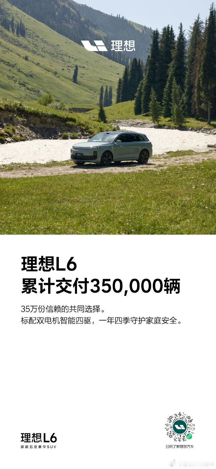 【打破纪录!理想L6累计交付突破35万辆🚗】理想汽车旗下爆款车型L6,累计交付量已正式突破35万辆大关,再度刷新其所在细分市场的速度纪录!作为品牌当前最年轻的车型,L6凭借精准的家庭定位与产品力,快速成为销量支柱,也助力理想巩固了市场地位。理想L6交付破35万 家庭SUV的首选之一
