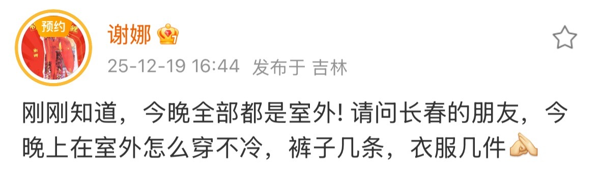 谢娜落地长春参加长春冰雪节,并在线求助保暖方式,娜姐多穿点,可别冻着了谢娜求助长春室外怎么穿不冷谢娜长春冰雪节求助保暖方式