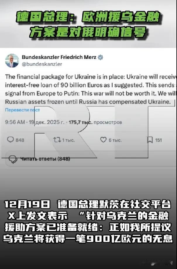 欧盟决定援助乌克兰900亿欧元,但资金来源并非被冻结俄罗斯资产。 据《今日俄罗斯》报道,12月19日,德国总理默茨在社交平台X上发文表示,“针对乌克兰的金融援助方案已准备就绪:正如我所提议,乌克兰将获得一笔900亿欧元的无息贷款。这是欧洲向俄罗斯发出的明确信号。”他还强调,欧盟将继续冻结俄罗斯资产,直至俄罗斯向乌克兰支付赔偿。 不过,英国《金融时报》报道称,最终方案决定使用欧盟纳税人的资金而非俄罗斯被冻结资产发放贷款。据分析,这一选择在政治层面上对默茨及欧盟委员会主席冯德莱恩均构成不利影响。 欧盟近期一直推动使用被冻结俄罗斯资产援助乌克兰,但其内部意见并不统一,特别是匈牙利总理欧尔班曾多次指责欧盟这一做法将带来严重后果。存放被冻结俄罗斯资产的比利时也十分担心将来会遭到俄罗斯追索,因而态度一直摇摆不定。 针对欧盟的做法,俄罗斯总统普京今天在莫斯科举行2025年度记者会上表示,欧盟这是想抢劫俄罗斯的资产。 中国是什么态度呢?12月17日,有记者就此问题进行提问,外交部发言人郭嘉昆表示,中方一贯反对违反国际法、未经联合国安理会授权的单边制裁。各方应该为劝和促谈、推动乌克兰危机政治解决营造积极氛围,创造有利条件,而不是相反。