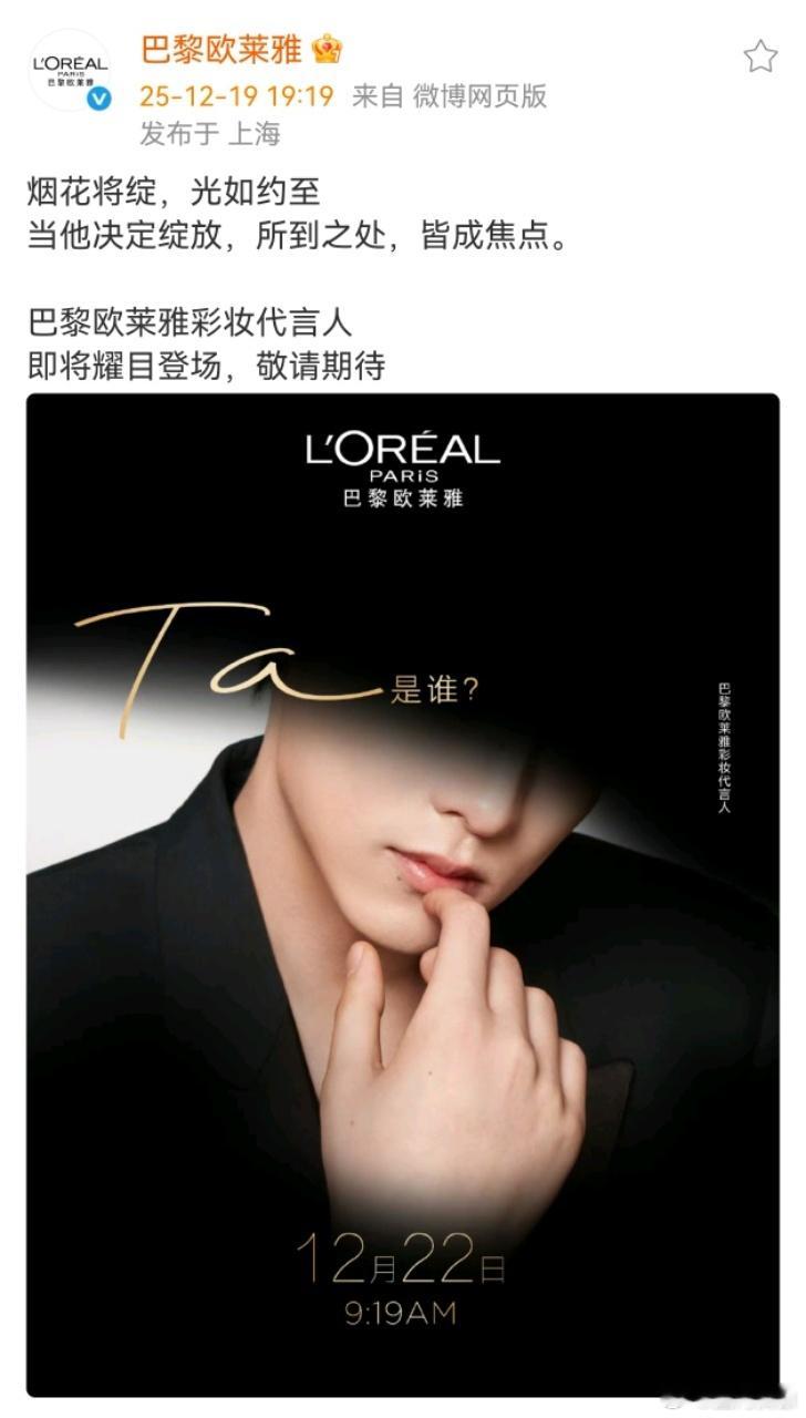 田栩宁代言巴黎欧莱雅 家人们谁懂啊!!发布田栩宁预热物料,品牌是戛纳电影节28 年 + 巴黎时装周 8 年官方合作伙伴!!谁看了不夸一句品牌霸霸牛,田栩宁贵气与品牌的质感适配度很高~已经搬好小板凳坐等12月22日正式官宣啦!!