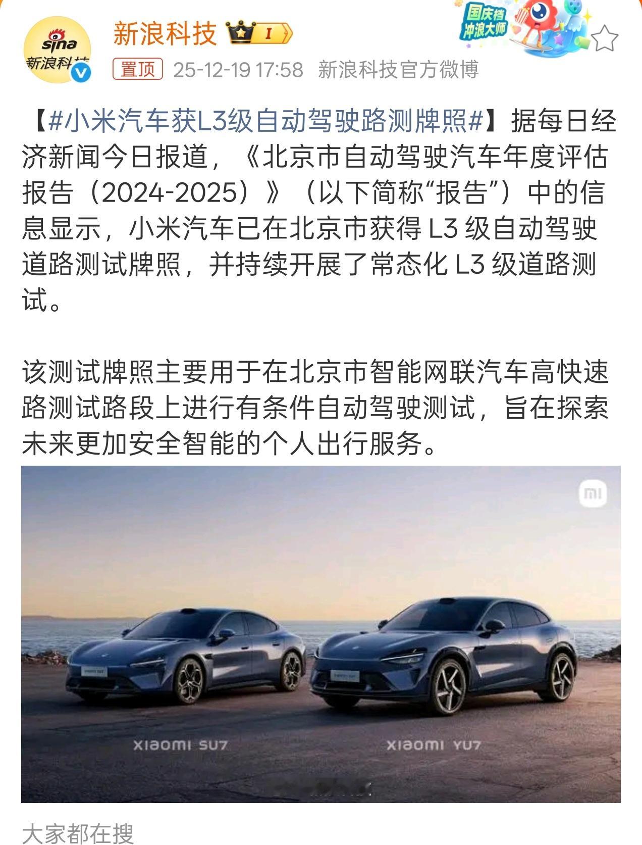 车圈准备迎接新的风暴吧没想到L3的牌照来了个雨露均沾,大家人人有份。但是L3不代表100%杜绝交通事故,反倒会让每一起事故都掀起更可怕的舆论狂潮。小米汽车获L3级自动驾驶路测牌照