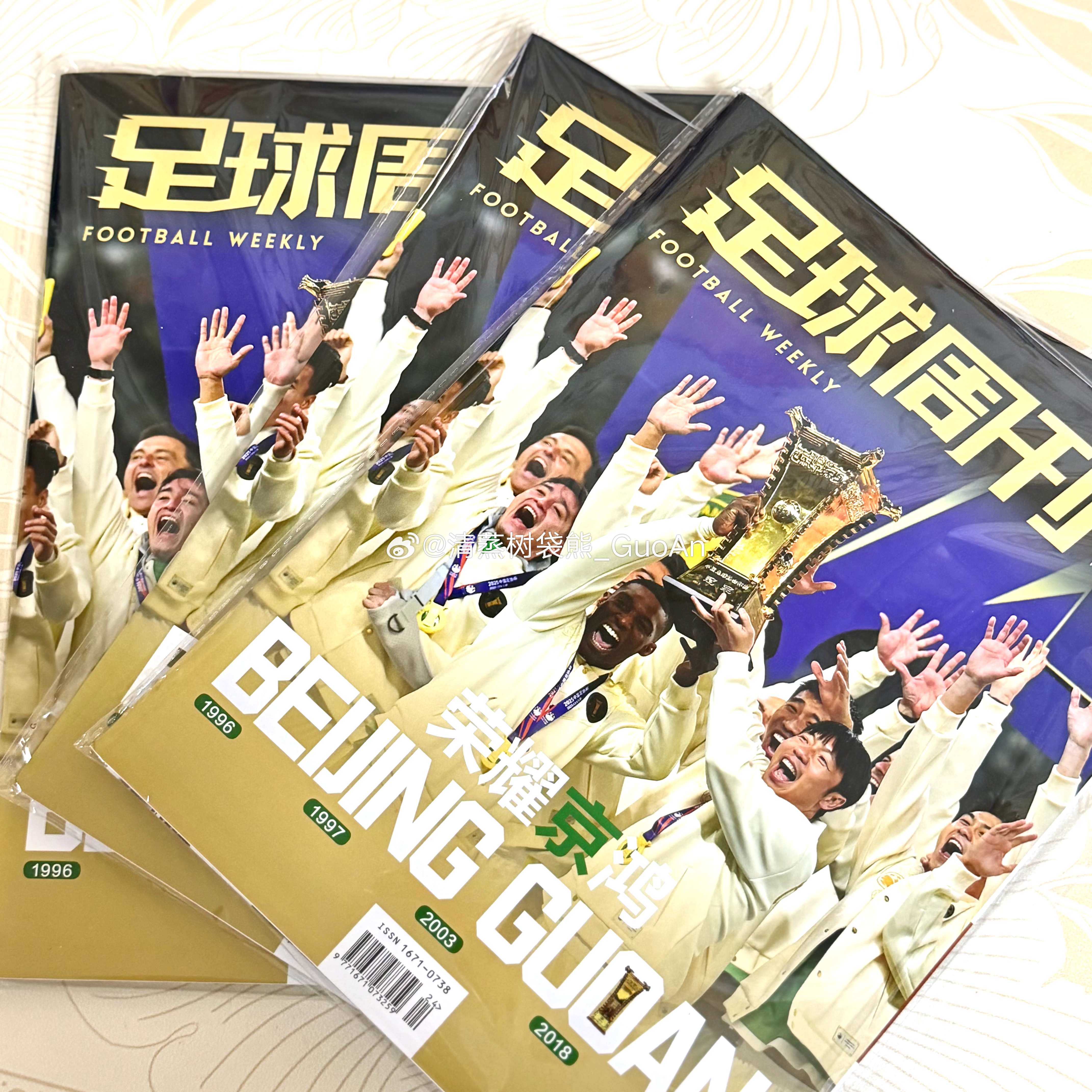 终于收到了《足球周刊》的冠军特辑,直接回馈给一直支持我的朋友,也给大家增添一些冠军回忆。这期的期号非常有意思,929,正是这场决赛中的锋线组合。【转发+关注我】即可参与抽奖,共抽取三位朋友,每人一本,周日晚开奖!感谢的支持北京国安 抽奖详情