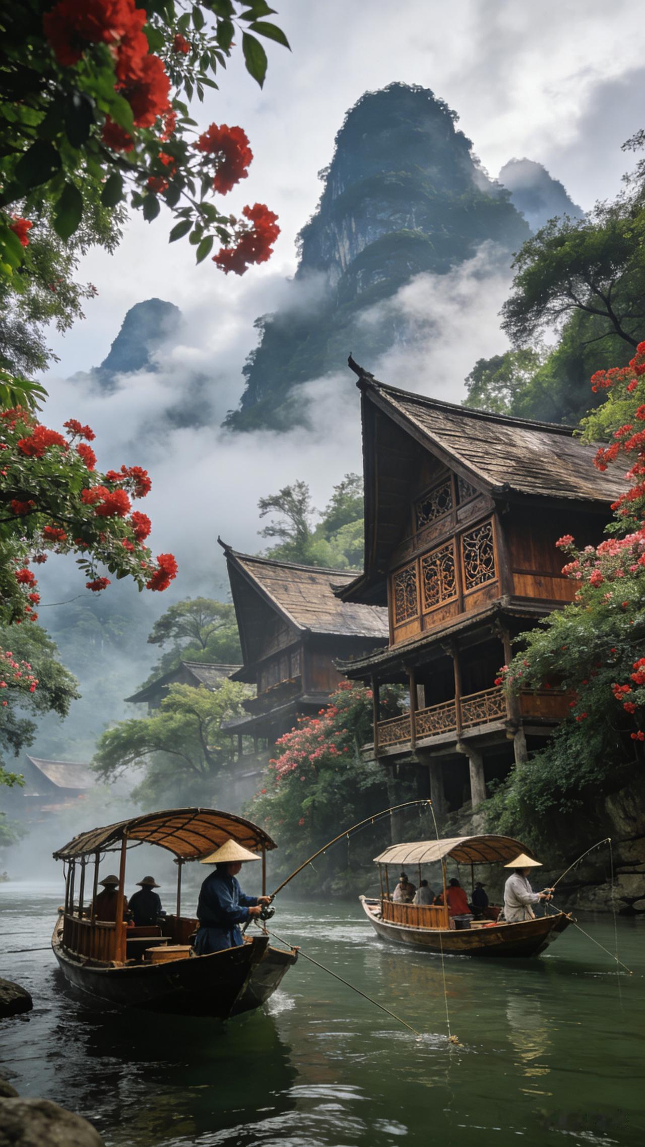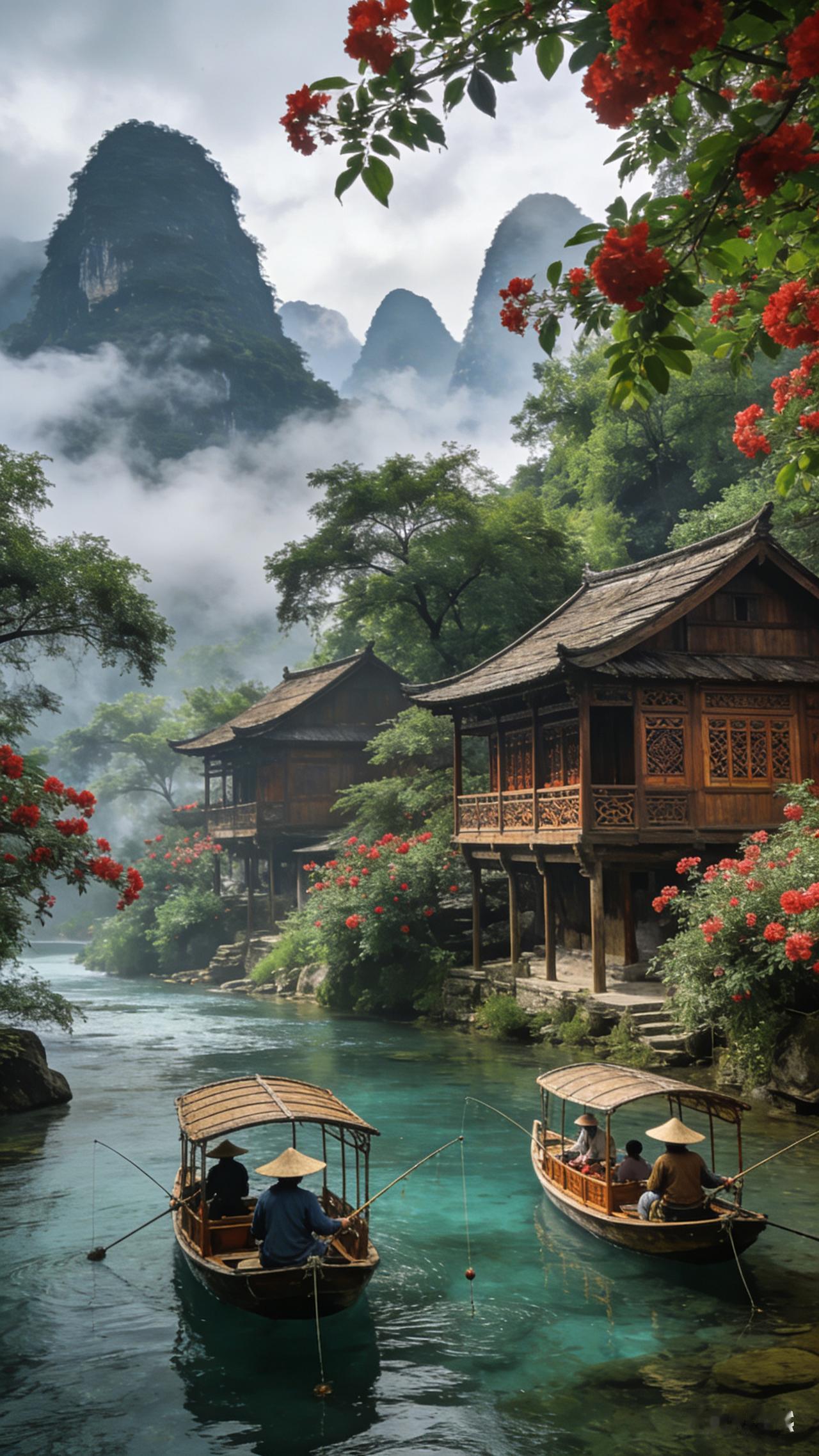 “花间美人笑,水畔影如仙”,让我一下就想到了江南的婉约。在江南,晴天落白雨,临水