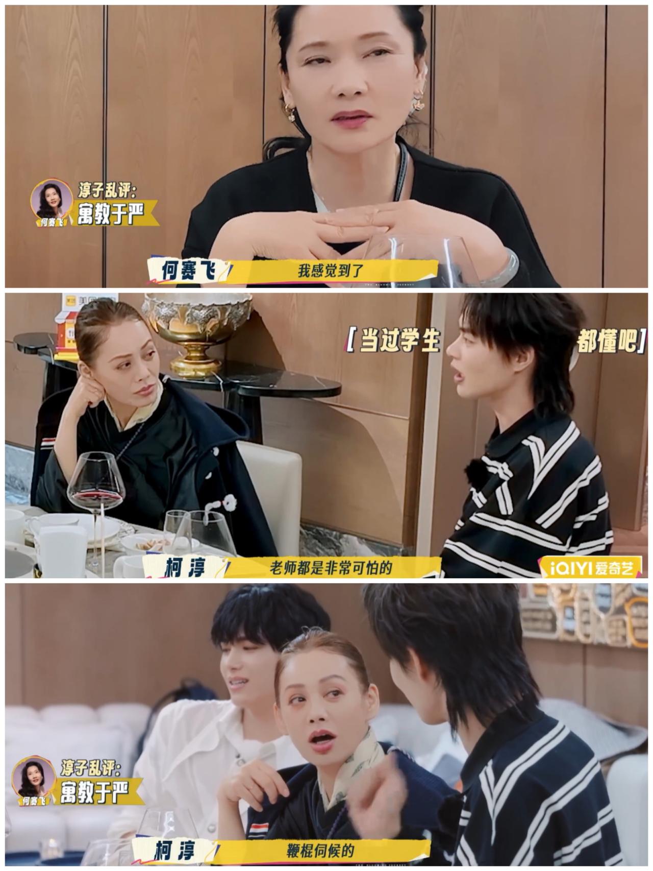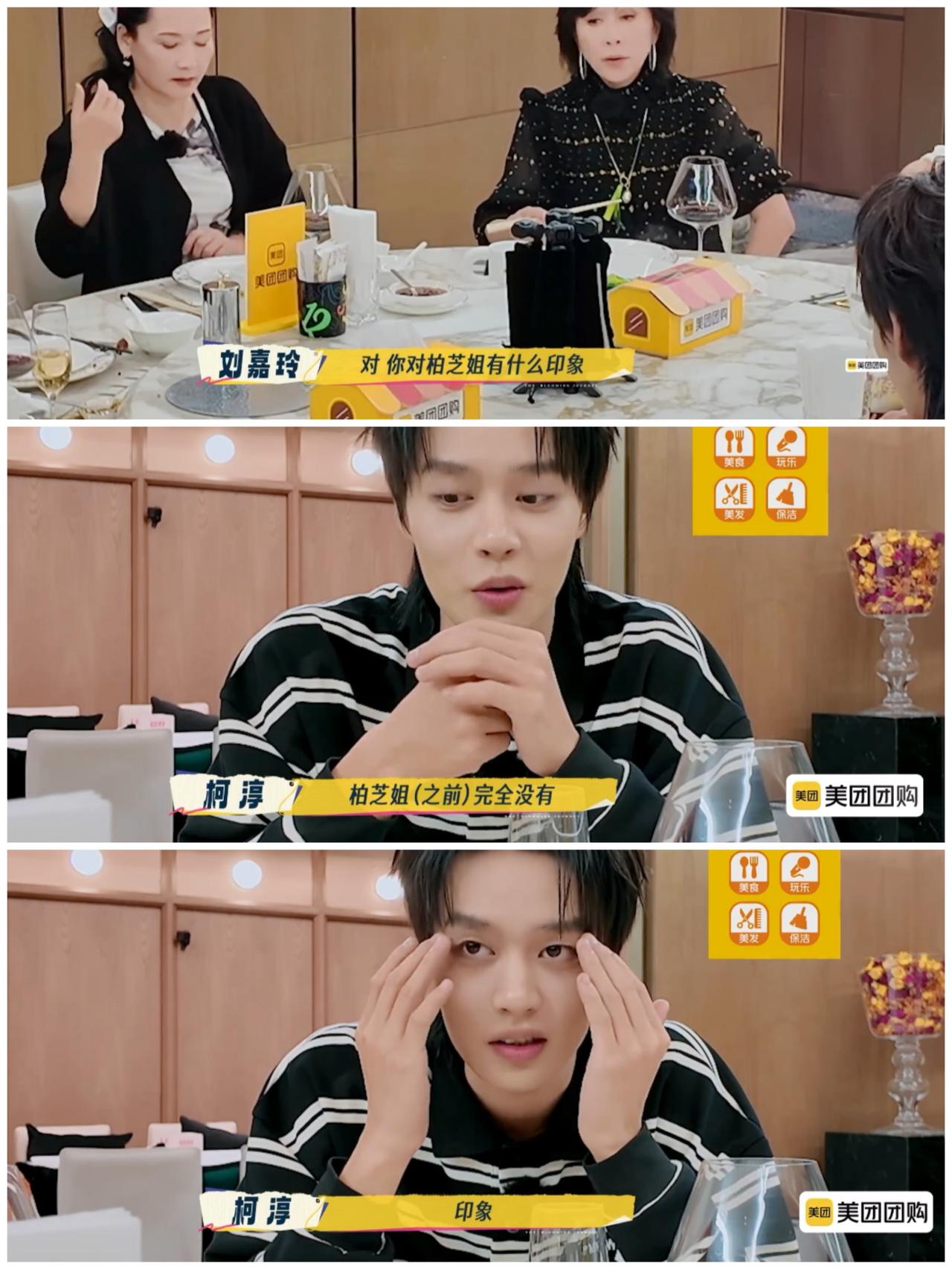 柯淳觉得繁花团里的姐姐非常难搞, 尤其怕刘嘉玲,何赛飞, 说不出的恐惧。 柯淳通过网络了解以为姐姐们会非常难搞, 对于刘嘉玲的初印象是严肃,严厉, 刘嘉玲对于这个印象不服气, 质问这个印象是怎么来到。 柯淳坦言是从网上剪辑的内容得知的。 刘嘉玲满脸无奈。 相比刘嘉玲, 柯淳对于何赛飞的初印象更加害怕, 理由是听说何赛飞是老师, 害怕自己有不对地方, 何赛飞会打手之类。 柯淳对于宁静的初印象是 他觉得宁静不讨厌人家“装”, 喜欢对方真性情。 柯淳对于张柏芝的初印象是“无印象”, 之前不知道她有孩子了。 柯淳对于刘嘉玲,何赛飞,宁静的评价, 还算比较中肯, 是大多数网友眼中的评价。 但是对于张柏芝的评价, 就太“诡异”了。 柯淳确定自己没有断网吗? 连张柏芝有孩子这个事情都不知道, 他是真的不知道, 还是假装不知道, 还是出于礼貌, 暗示张柏芝看起来很年轻, 不像孩子的妈妈呢? 如果是这样的话, 他也太高情商了。 不过,柯淳对于张柏芝的“无印象”评价, 正好对应刘晓庆的“张柏芝拍过很多电影”的评价, 柯淳和刘晓庆对于张柏芝都不了解, 也许不喜欢张柏芝 也许不在乎张柏芝, 又也许张柏芝把自己掩藏得很好。 还是张柏芝没有何赛飞,刘嘉玲知名度高呢?