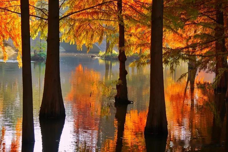 九龙坡九龙滩的水杉确实美,可就几棵树确实差点意思。水杉是“植物界活化石”,中国珍稀特有树种,是国家一级重点保护植物。要是多栽种一些,形成一片水杉林,那“美拉德”氛围感不得直接拉满。 像九曲河湿地公园和彩云湖国家湿地公园,那儿的水杉林就特别壮观。九曲河的水杉全变黄,成片橘黄色美如画卷;彩云湖有400多株水杉,和湖水映衬,光影下色彩绚烂。九龙滩要是也能有大片水杉林,肯定能吸引更多人来打卡。 冬日生活打卡季