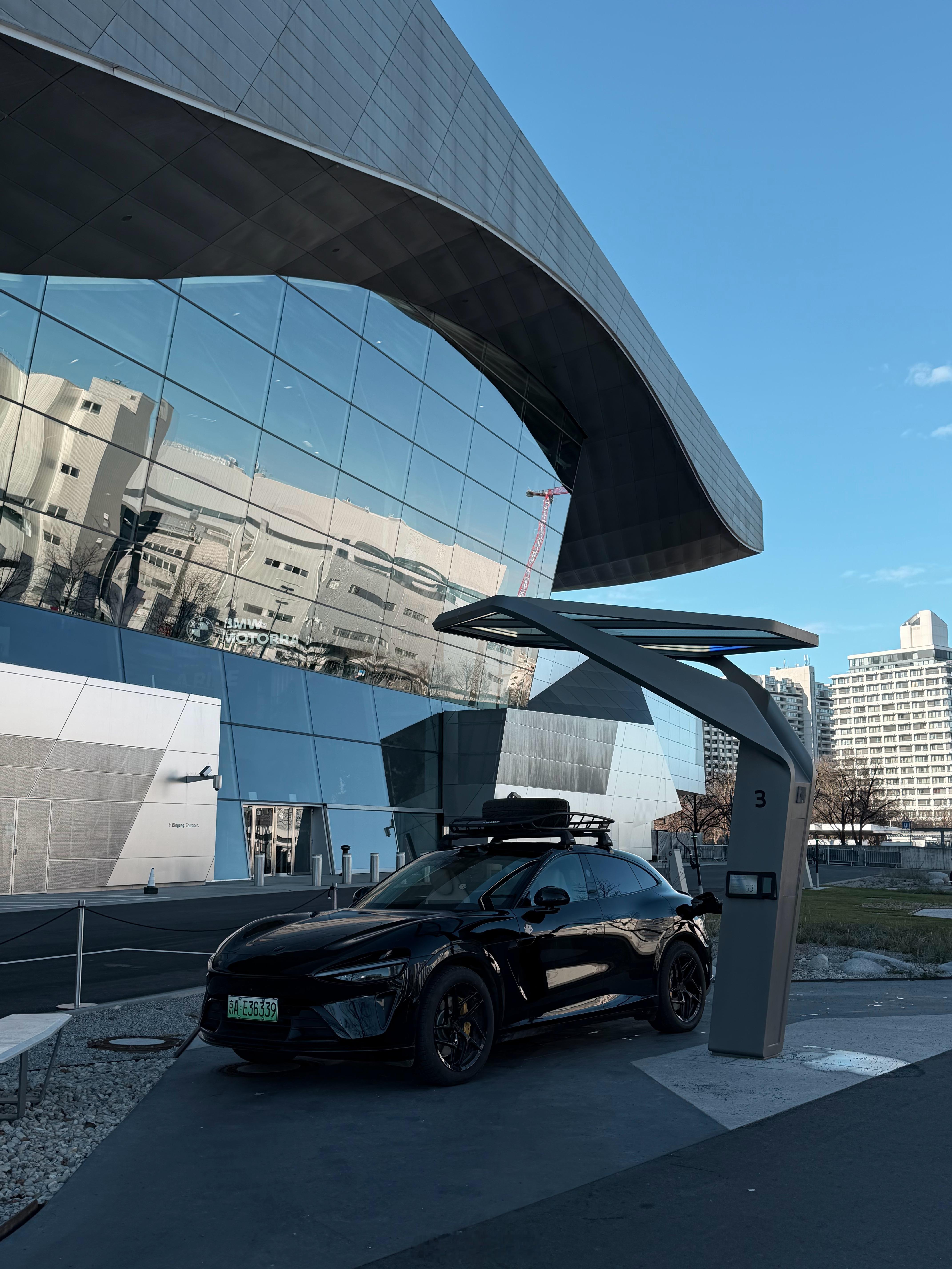 慕尼黑宝马世界门口的充电桩……万万也没想到能来个绿牌小米来充电带着四岁娃自驾欧洲