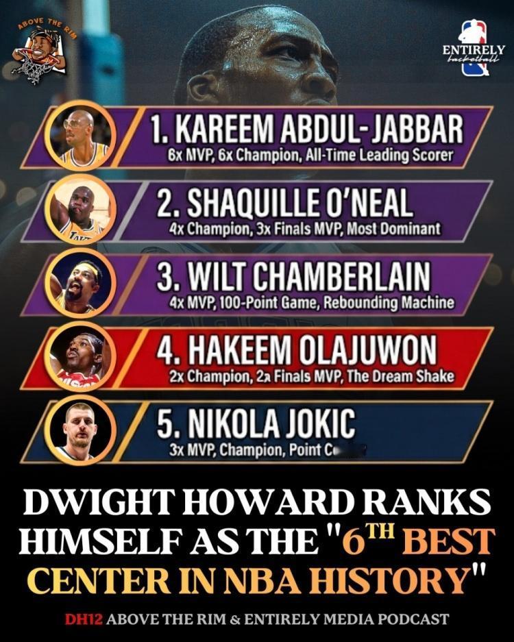 历史第6?霍华德排历史中锋: “我会把自己排在第六位。贾巴尔、奥尼尔、张伯伦、奥拉朱旺前四。然后就是约基奇和我。” 霍华德主打一个自信,但他可能忘了,比尔拉塞尔、大卫罗宾逊、摩西马龙,甚至还有乔治麦肯这样的传奇中锋,这些人,似乎都比霍华德要更强一些,尤其是比尔拉塞尔、乔治麦肯和摩西马龙,荣誉拉满,根本不是霍华德能碰瓷的。 中锋位置上,人才太多,霍华德算是中锋时代的尾巴,他从来不是一个核心攻击手,没有MVP,也没有核心身份的冠军,想要和这些中锋大咖相提并论,有点过于托大了。