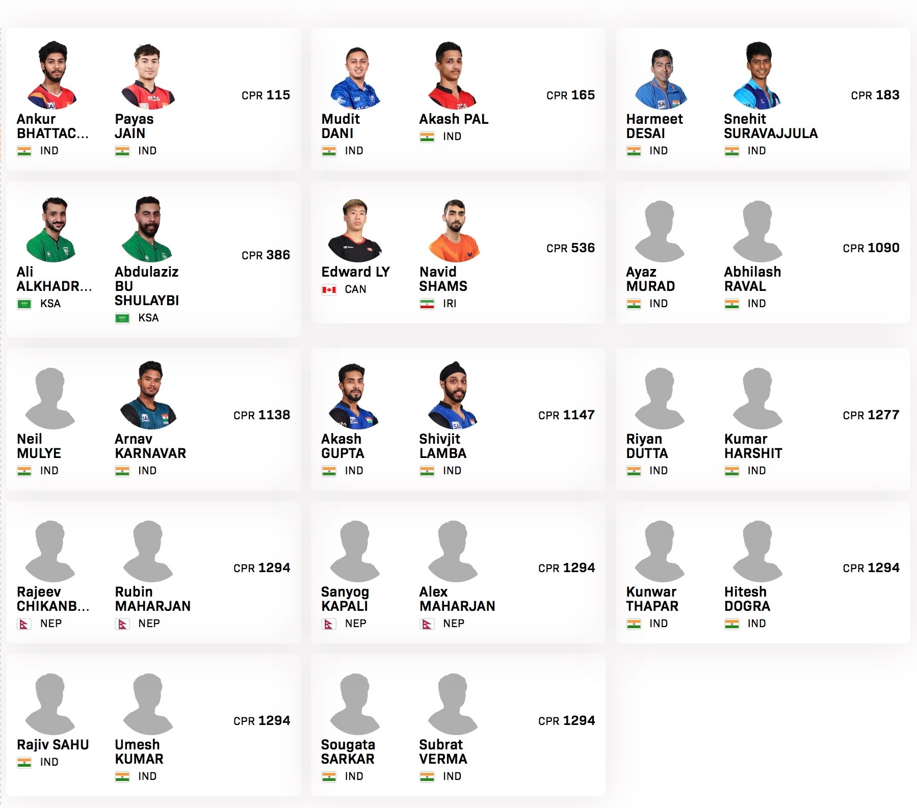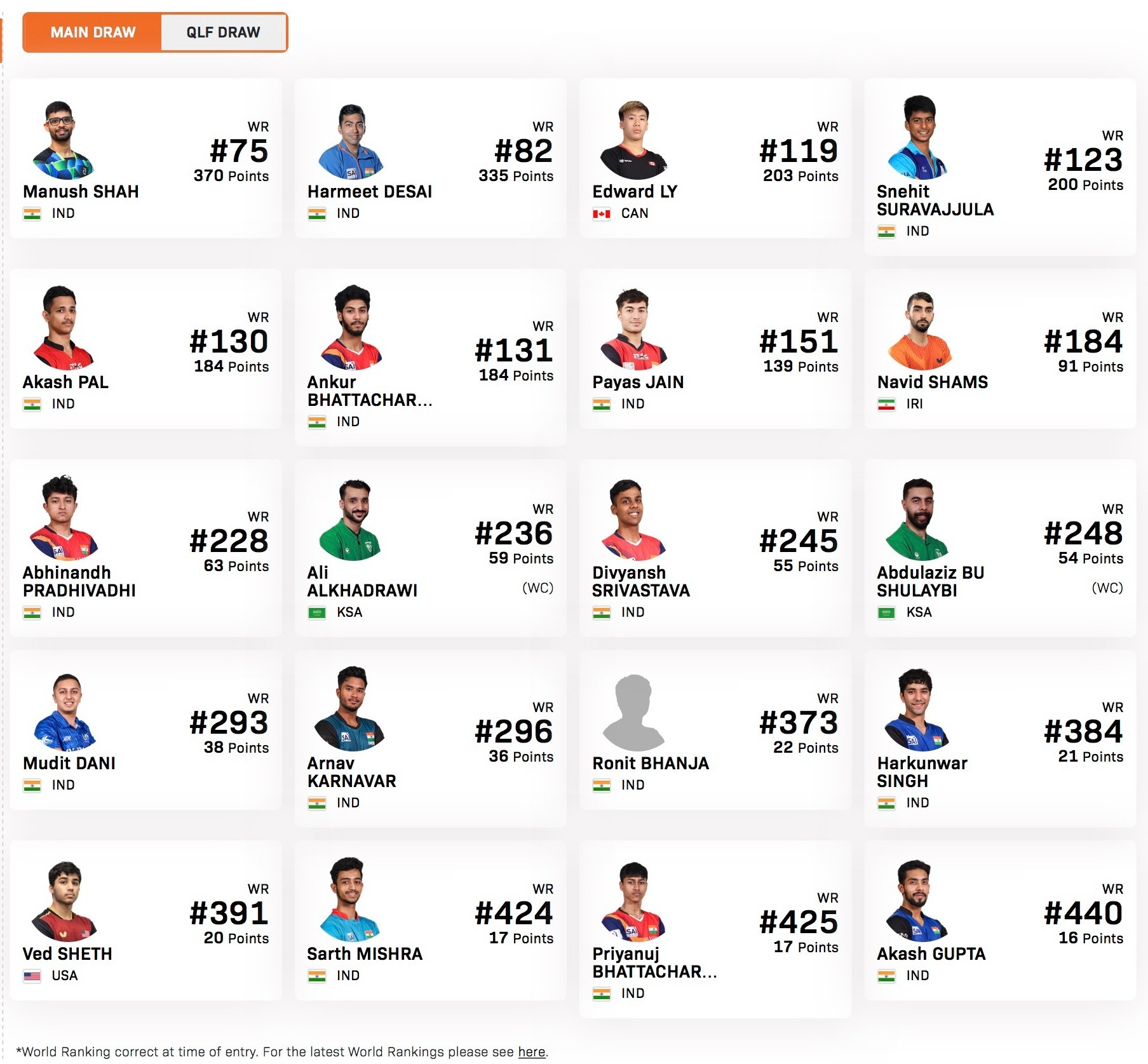 WTT常规挑战赛马斯喀特站2026【男单参赛名单】比赛时间:1.19-1.24正