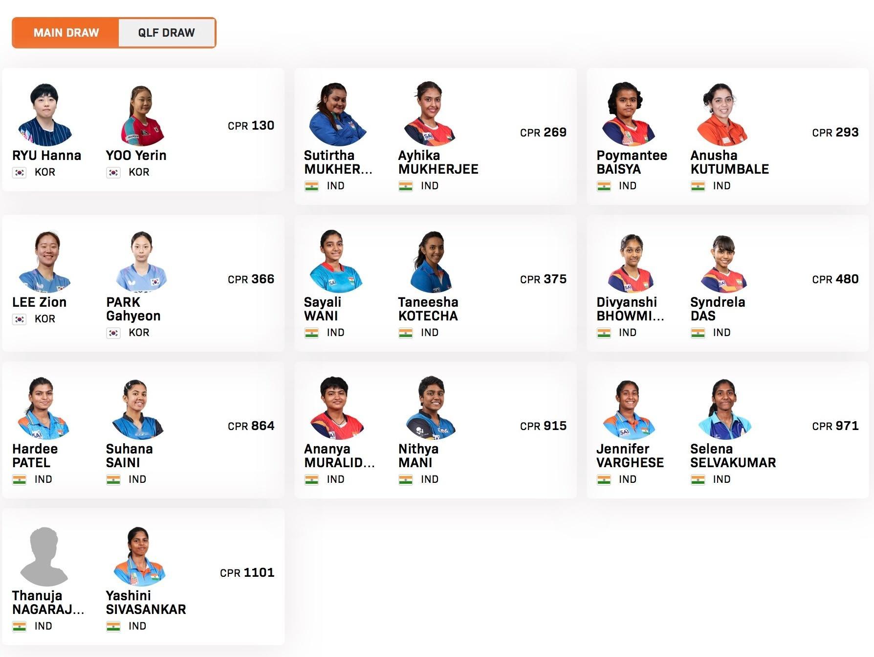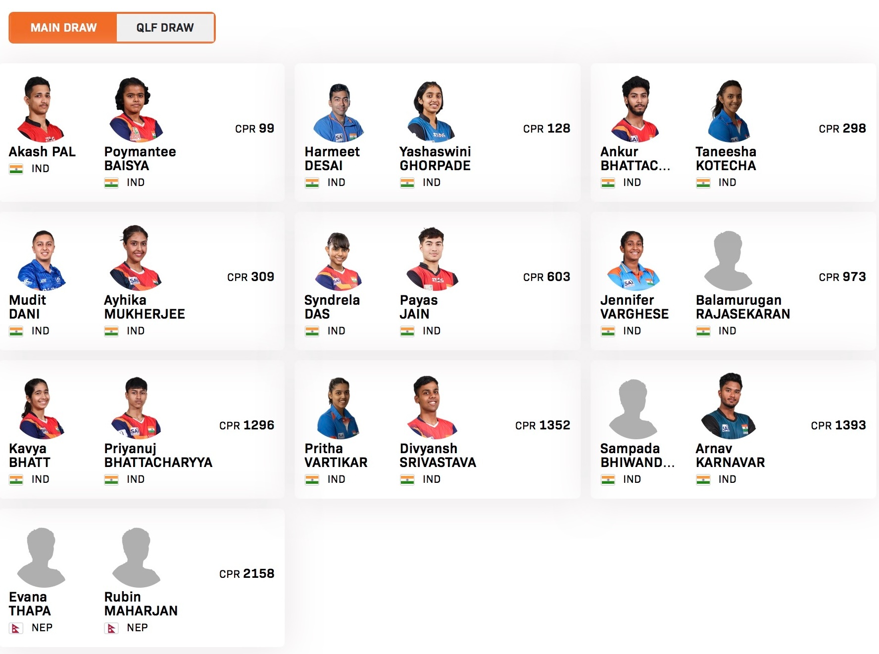 2026赛季WTT球星挑战赛男、女单打正赛48签• 25个基于世排入围名额• 4
