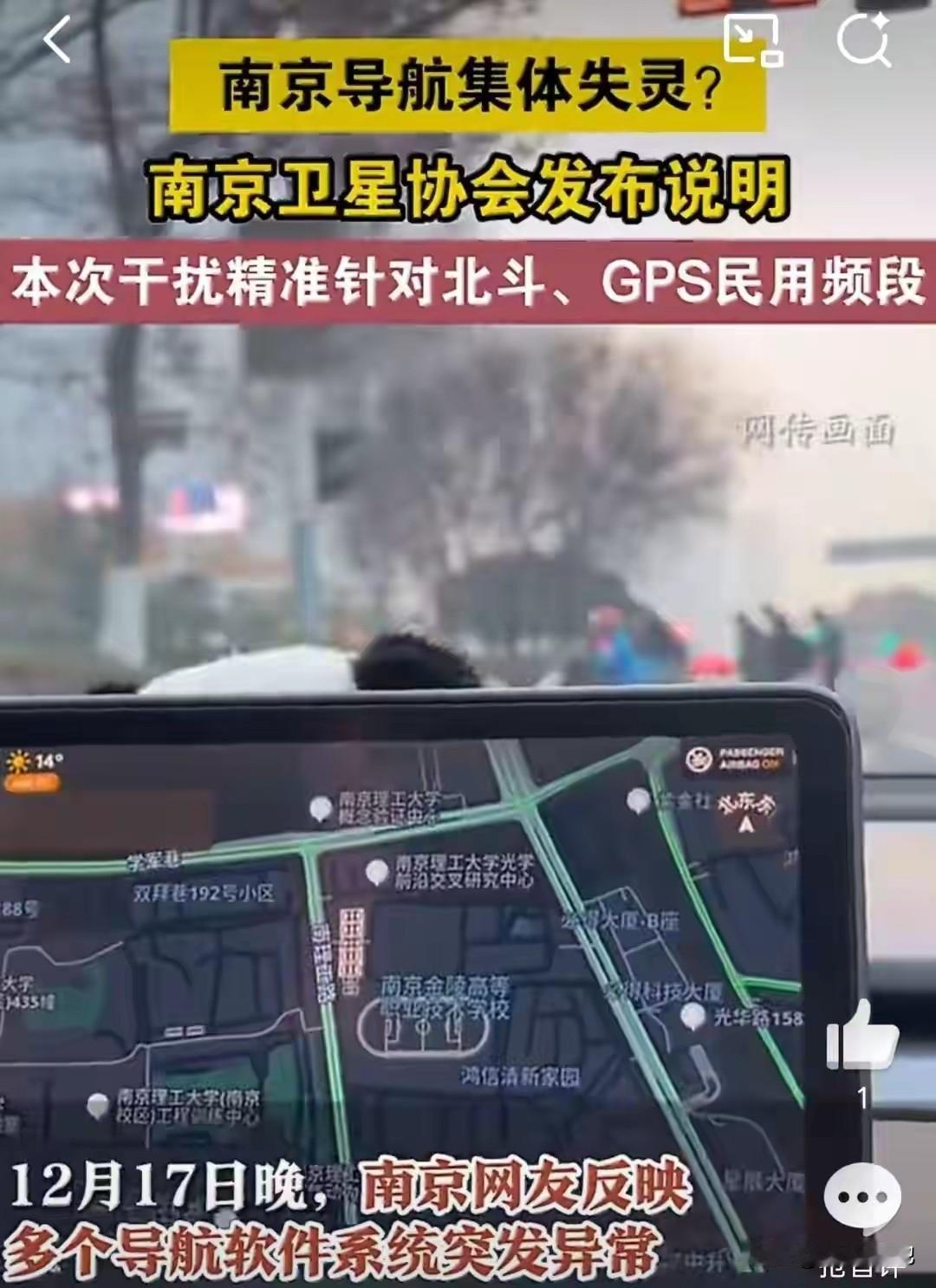 南京导航失灵这个事,引起社会的高度关注,尽管现已查明,事发为卫星信号受干扰所致,但绝不可能就此放过!关键是国家卫星导航系统的安全稳定运行,不仅仅涉及到千家万户出行安全,而且对国民经济的发展以及国家国防的军事安全,无疑具有非常重要的作用。 那么究竟是谁这么轻易的干扰了卫星 !是敌对势力破坏?亦或是卫星科技人员人为造成,还是操作控制失误导致。这次好在没有干扰到军事卫星,但也必须要给社会一个说法!和平时期这事暂且可能不算太大,但一旦国家出现战事卫星被干扰,损失的可就不仅仅是上面这些。 后果是,战时的武器装备将变成“睁眼瞎”,肯定会面临意想不到财产人员损失。“中国产”的北斗卫星导航,可以说在全球的地位举足轻重,这样问题发生几乎不可思议。 非常有必要进行展开溯源,其意义在于持续提升卫星导航系统的科技进步,最大可能发挥卫星导航系统作用,更好服务国家的各项事业的发展!对南京导航失灵,友友又怎么看?欢迎点赞评论分享。