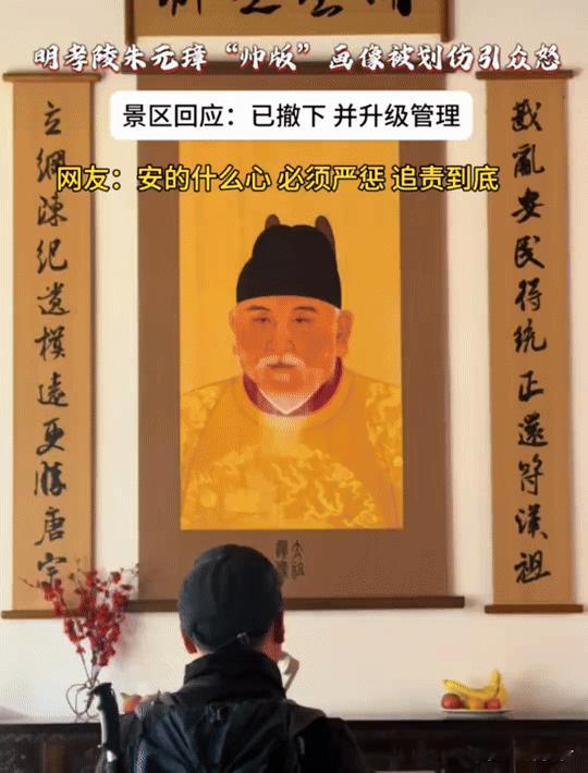 当朱元璋画像被划伤,是谁在刺痛历史的眼睛? 你敢信?明孝陵里朱元璋“帅版”画像竟被人恶意划伤!那一道道痕迹,像针一样扎在每个关注历史的人心里。 近日,这幅颇具特色的画像遭此厄运,画面上的划痕触目惊心。景区第一时间撤下受损画像并升级管理,可网友的愤怒并未平息,“必须严惩追责到底”的呼声不断。 历史文物是时光的载体,每一处损毁都是对文明的亵渎。朱元璋的画像,承载的是一段王朝记忆,怎能容得下这般恶意?请记住,文明观览、敬畏历史,从来不是一句空话,而是我们每个人该守住的底线。