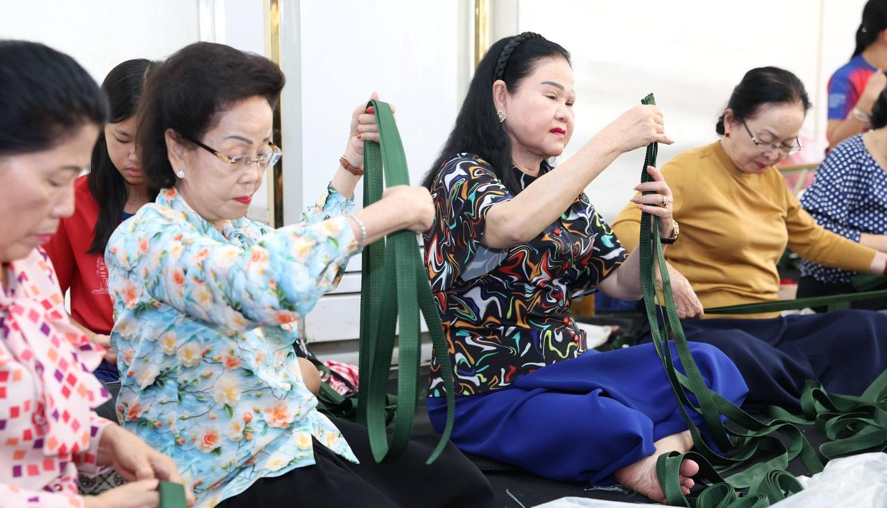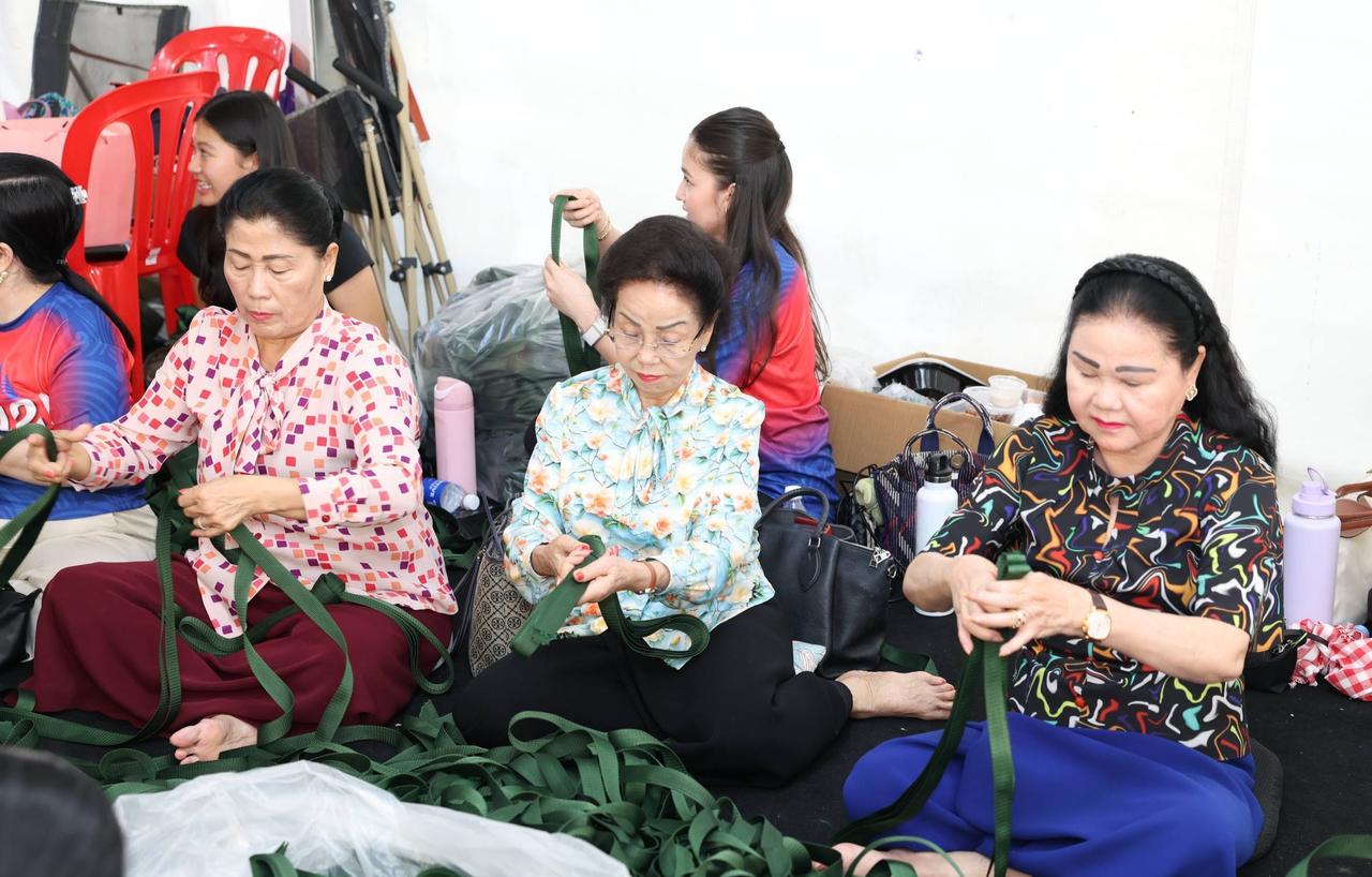 12月15日,洪森亲王的妻子文拉妮女亲王带着长女洪玛娜在金边前往救助物资集散点,与志愿者并肩投入物资整理和打包工作。 看看文拉妮亲王这眉毛,浓黑,画的多有风格,多像蜡笔小新,很多贵妇都争先恐后的模仿她。 洪玛娜40多岁了,生过5个孩子还这么年轻漂亮,风姿绰约,美艳绝伦,肯定达到了千亿媳妇的生活标准。