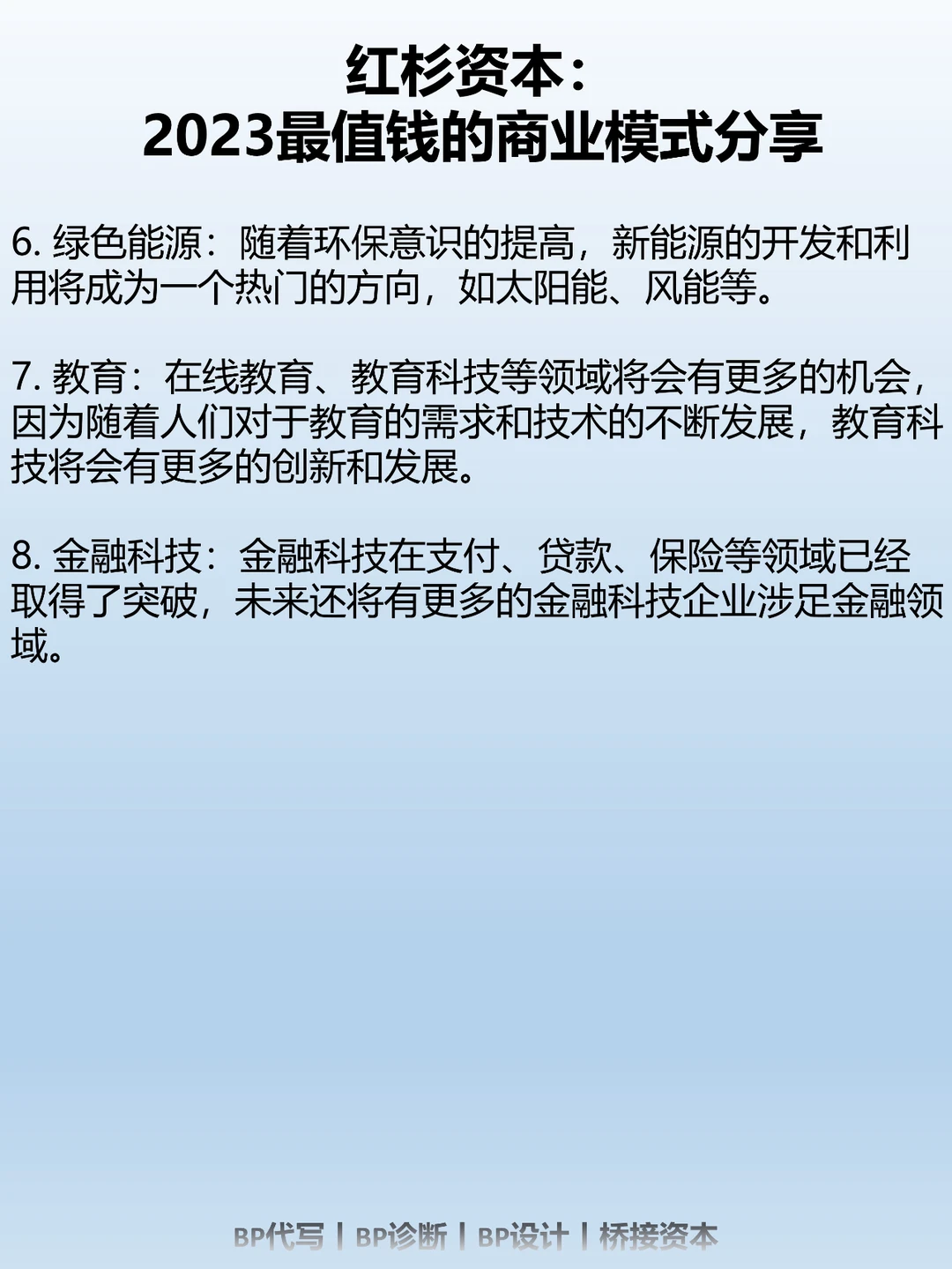 7. 教育:在线教育、教育科技等领域将会有更多的机会,因为随着人们对于教育的需求和技术的不断发展,教育科技将会有更多的创新和发展。