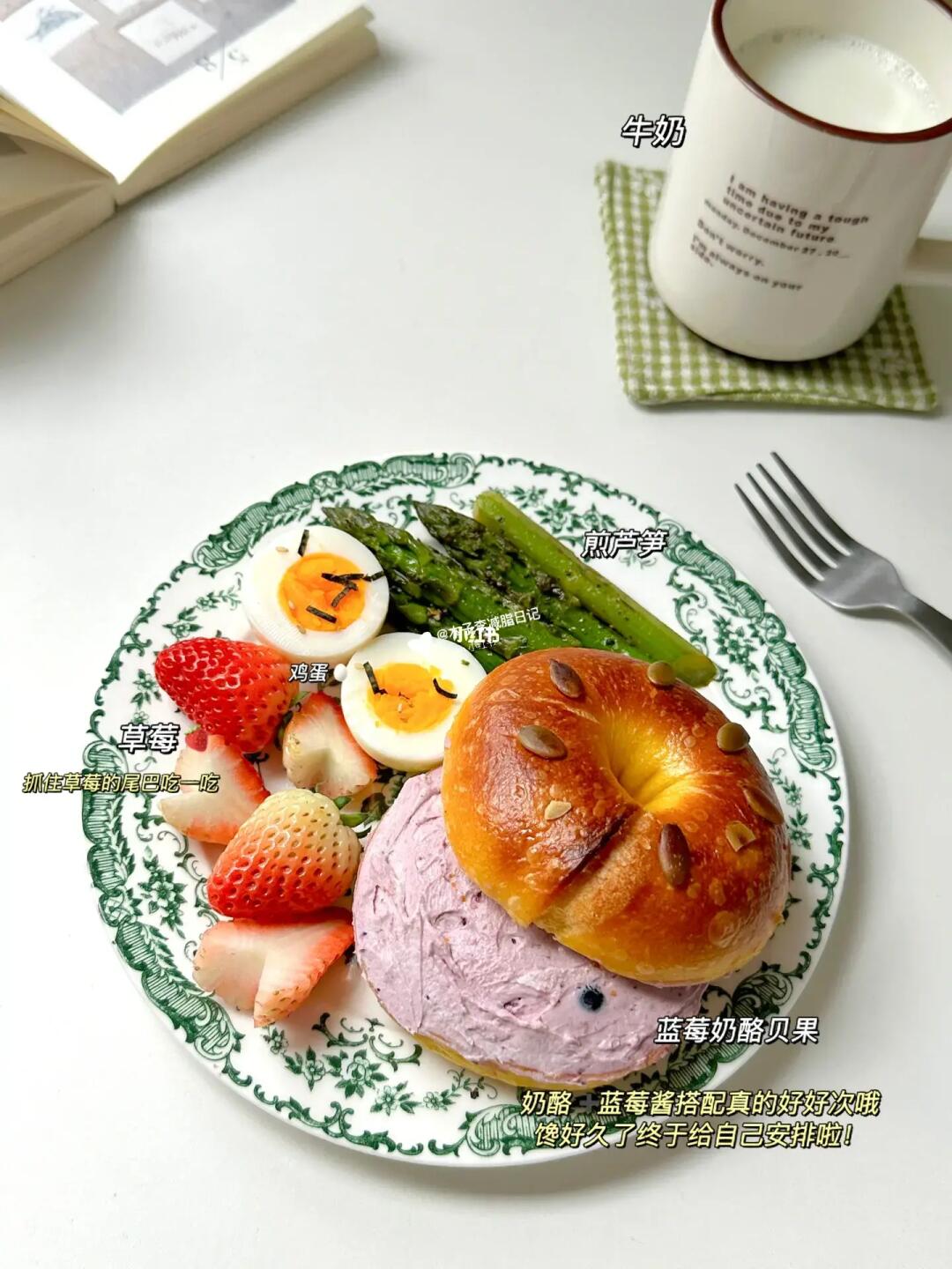 ▪️初始体重120斤 ▪️已减27斤 - 🥣早:蓝莓奶酪贝果 | 鸡蛋 | 煎芦笋 | 草莓🍓 | 牛奶🥛 🥣午:西红柿鸡蛋面🍜 | 陨石拿铁 🥣晚:蒸蛋 | 辣椒炒肉 | 一块西瓜🍉 🏋️运动:🈚 💧今日饮水2000ml - 💭在家的饮食就是一个家常,除了早餐吃自己想吃的,中午和晚饭都随家人吃,反正能控制就控制,在家的日子就是一个维持体重的样子,掉不掉称的无所谓!只要身体健康就行啦! - 最近状态就是降低期待就减少焦虑和失望~好好爱自己比什么都强。