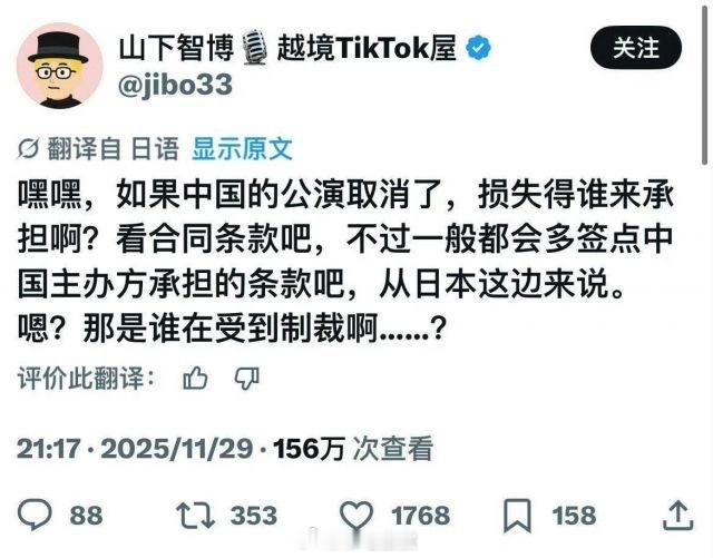 网友:2019年B站百大up日本博主山下智博,被发现在X上阴阳怪气,转头在B站卖惨带货,当面一套背地一套