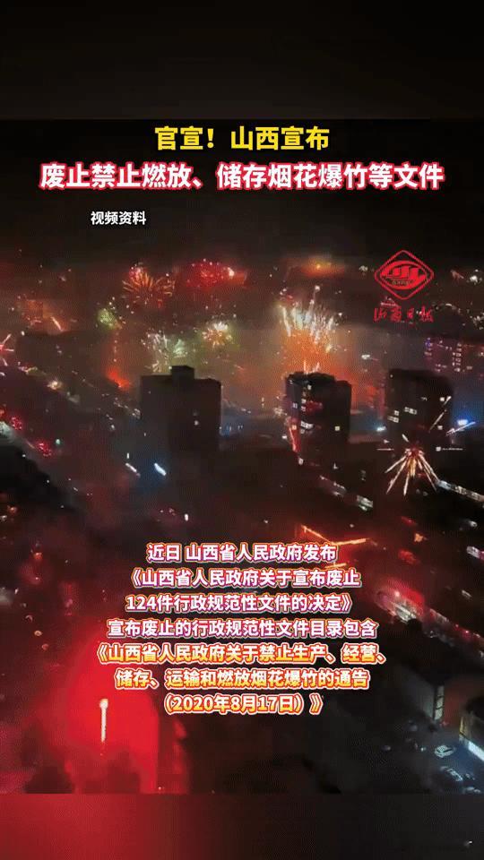 山西人,今年能痛痛快快放烟花了! 有多少山西人怀念烟花在夜空炸开的绚烂年味?现在,这个期待要成真了! 近日,山西省政府官宣废止包括禁止燃放、储存烟花爆竹在内的124件行政规范性文件。之所以废止,是因为这些文件的制定依据已发生重大变化,内容不再适应经济社会发展。 这一消息让不少山西人直呼“爷青回”,毕竟烟花里藏着的是浓浓的年味儿和烟火气。当然,享受烟花的同时,安全和环保的弦也不能松,让我们期待在绚烂烟火中,找回那久违的热闹与温暖。