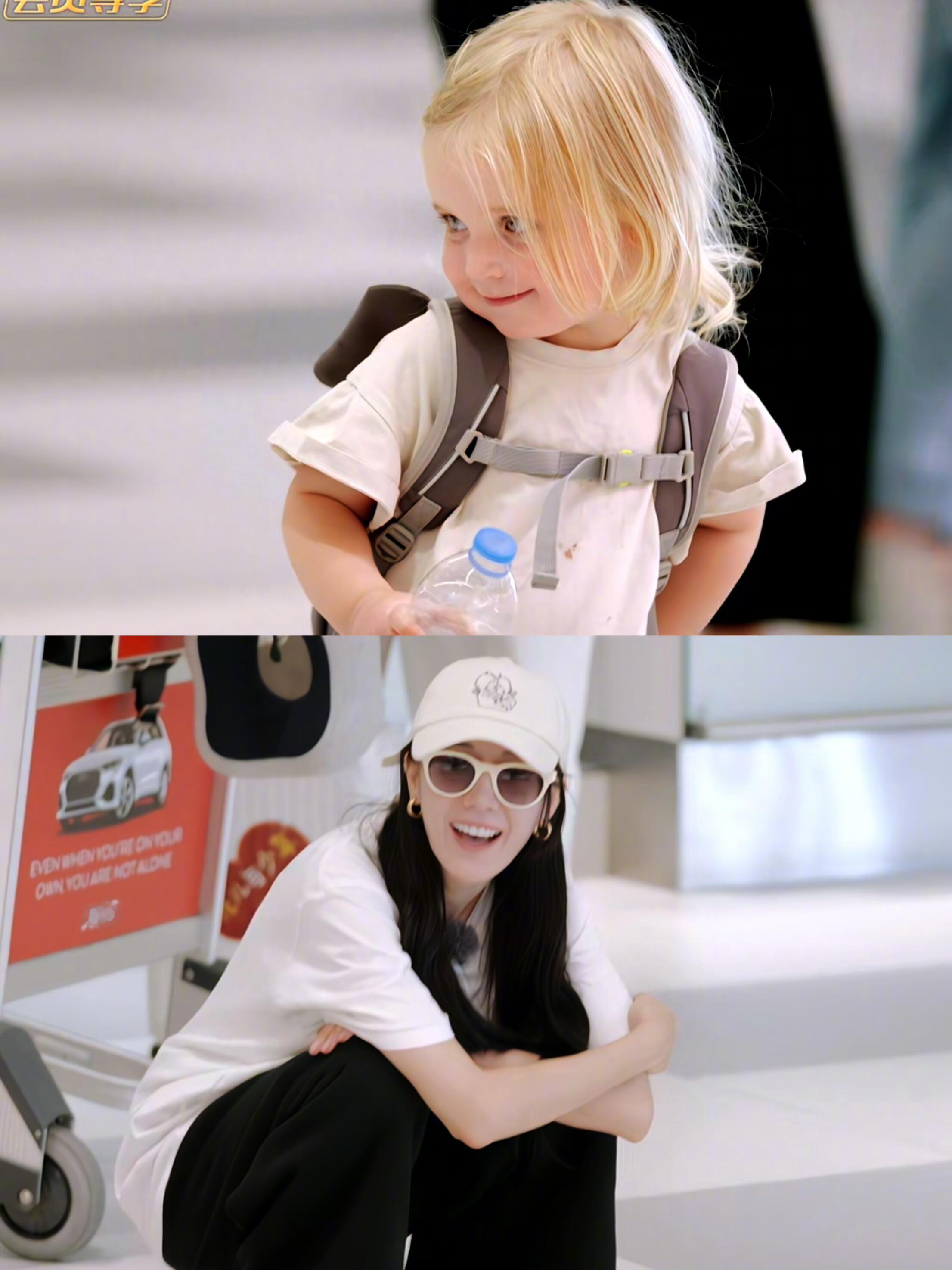 国内某著名女星,机场众目睽睽之下逗小孩玩