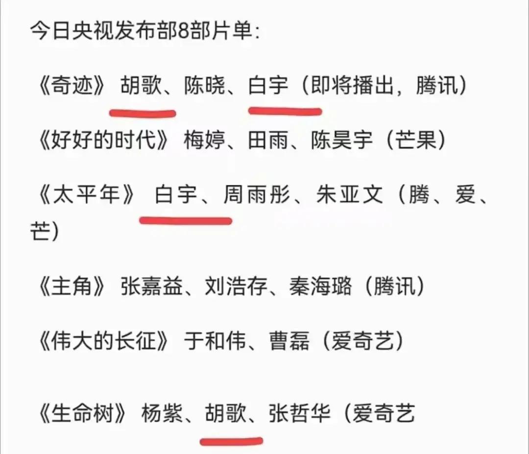 告诉你个反常识的数据:胡歌白宇的剧,收视率比央视平均水平高47%。 央视片单