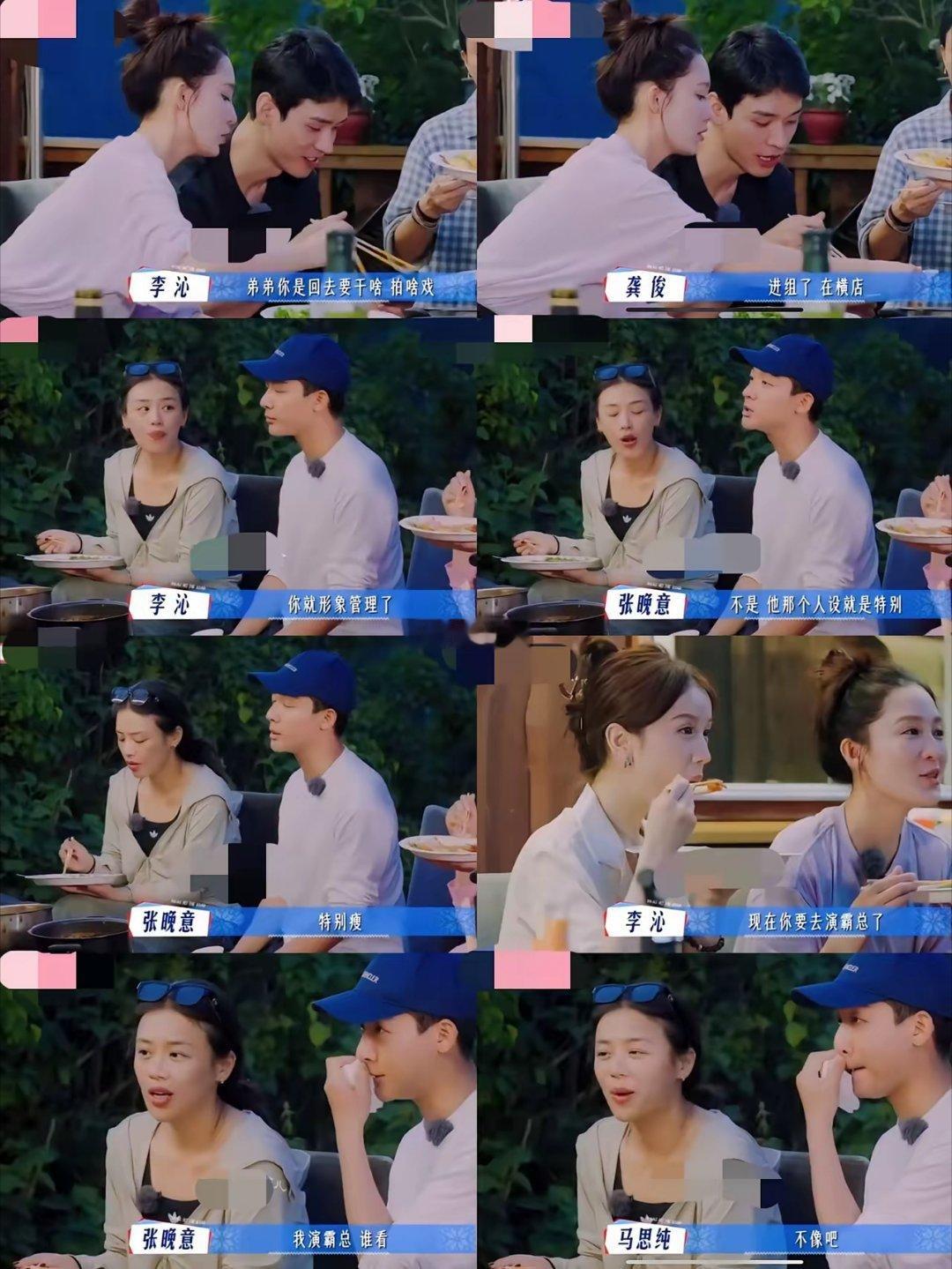 从时间上看,张晚意《花少》录制结束后没几天进的应该是《伟大的长征》剧组。张晚意说那个人设就是特别瘦,然后在节目后期就开始控制饮食,马思纯特意给他买蟹棒和虾之类的。大家吃饭聊天问他拍的什么戏,他几乎闭嘴不谈,保密工作相当好。然后李沁就盲猜是霸总,张晚意说“我演霸总,谁看?”马思纯也补刀说“不像吧?”惊叹于张晚意没多久就从小圆脸变成了尖下巴,以最好的状态进组,真的是演员的自我修养!花少的氛围真的太好了,当面蛐蛐感情真好,姐姐们对张晚意也是真爱!