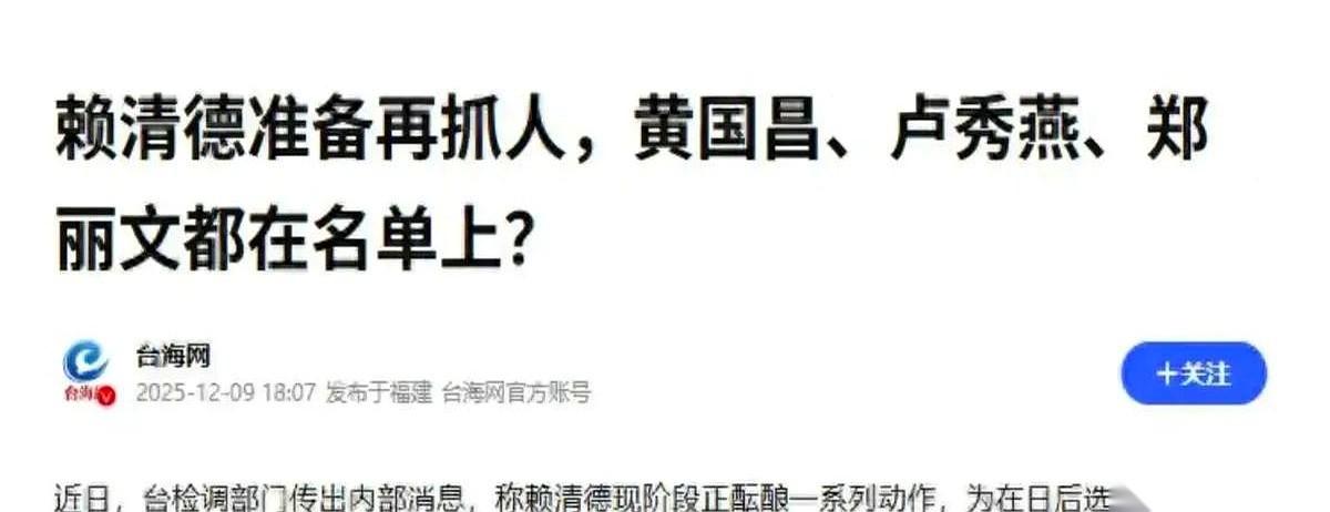 前脚要去上海,后脚一份热乎乎的“抓人名单”就递上来了。 点名道姓,八个人。 这操作,说实话,挺糙的。但凡看过几集宫斗剧都明白,这叫敲山震虎。 有意思的是,这名单里,还塞了几个“自己人”当烟雾弹。 你品,你细品。 真正的目标,藏都藏不住,就是那个最近人气高,又打算去大陆走走看看的。 说白了,就是怕。 怕两岸走得近了,怕老百姓看到了不一样的东西,听到了不一样的声音。 怕自己那套小圈子的东西,在实实在在的交流面前,一戳就破。 所以,谁想沟通,就先给你扣个帽子,上个“预备名单”。 什么时候动手?看心情,也看你的“表现”。 这叫什么事儿啊。 把司法当成自家打手,把规矩当成橡皮泥,想怎么捏就怎么捏。 证据?需要的时候,它自然就“长”出来了。 但话说回来,越是这样,越说明心里发虚。 真正有底气的人,是打开大门,笑迎八方客,自信地让你去看、去听、去比较。 而不是偷偷摸摸在人背后,算计着什么时候给人下个绊子。 格局,高下立判。