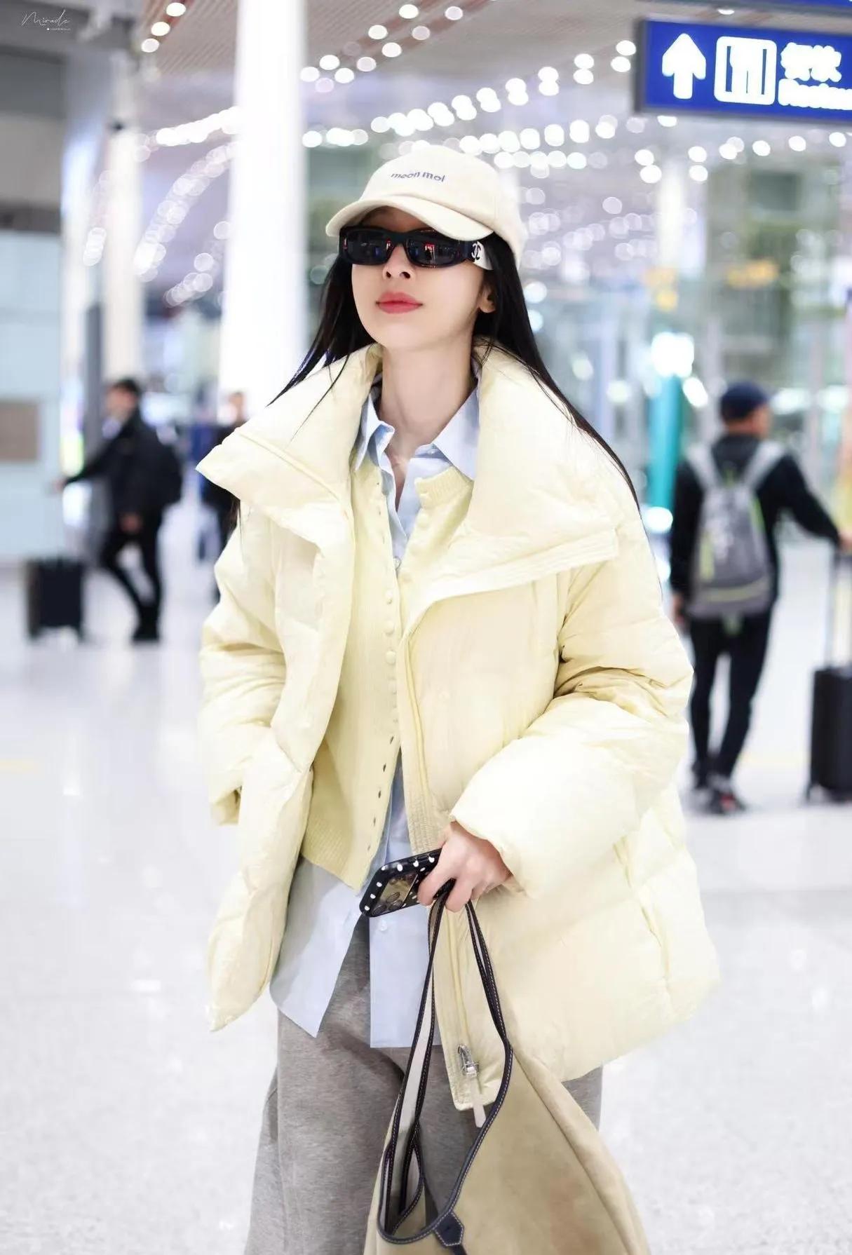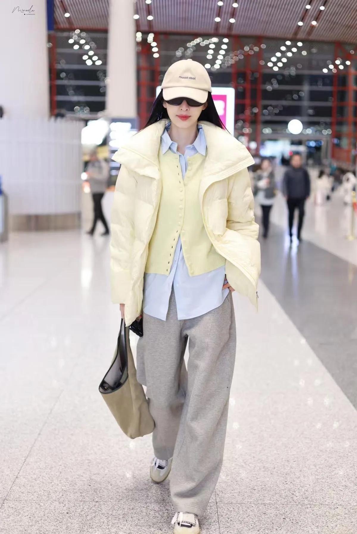 张俪的机场穿搭也太会了吧! 张俪最新机场路透美翻了~奶黄色羽绒服内搭同色系针织开衫和浅蓝衬衫,叠穿层次感拉满,下装搭配灰色阔腿裤,休闲又随性,再配上棒球帽和墨镜,整套look温柔又时髦,冬日氛围感直接拉满! 果然时尚感刻在骨子里,随便穿穿都这么有范儿,这穿搭模板赶紧码住✅