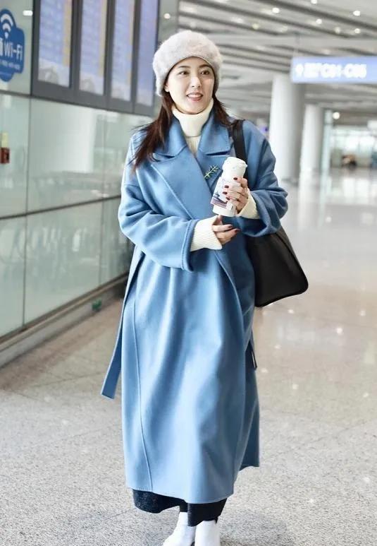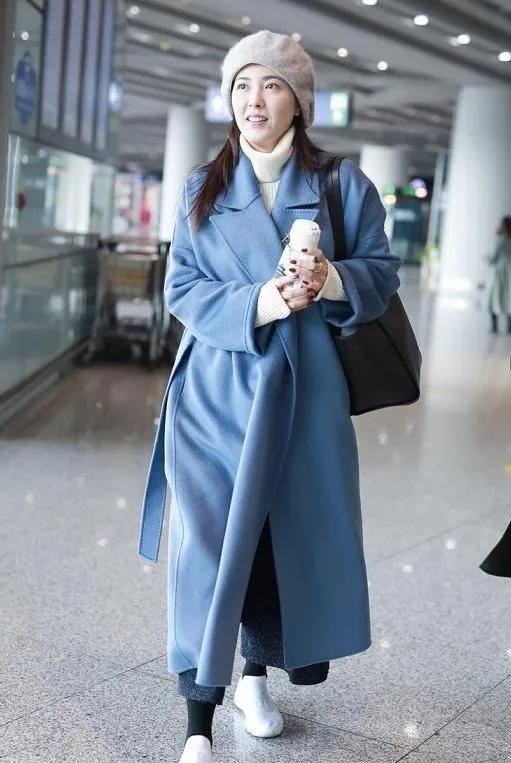 曾黎的冬日穿搭太有气质了! 曾黎最新机场造型美到失语~一袭雾霾蓝长款大衣温柔又大气,内搭米白色高领毛衣,经典的蓝白配色高级感拉满,搭配浅灰色针织帽,慵懒又随性,手里捧着保温杯还多了几分软糯感。 40+的曾黎把冬日穿搭的优雅与舒适平衡得恰到好处,这状态和衣品真的绝了,妥妥的气质女神范本✨