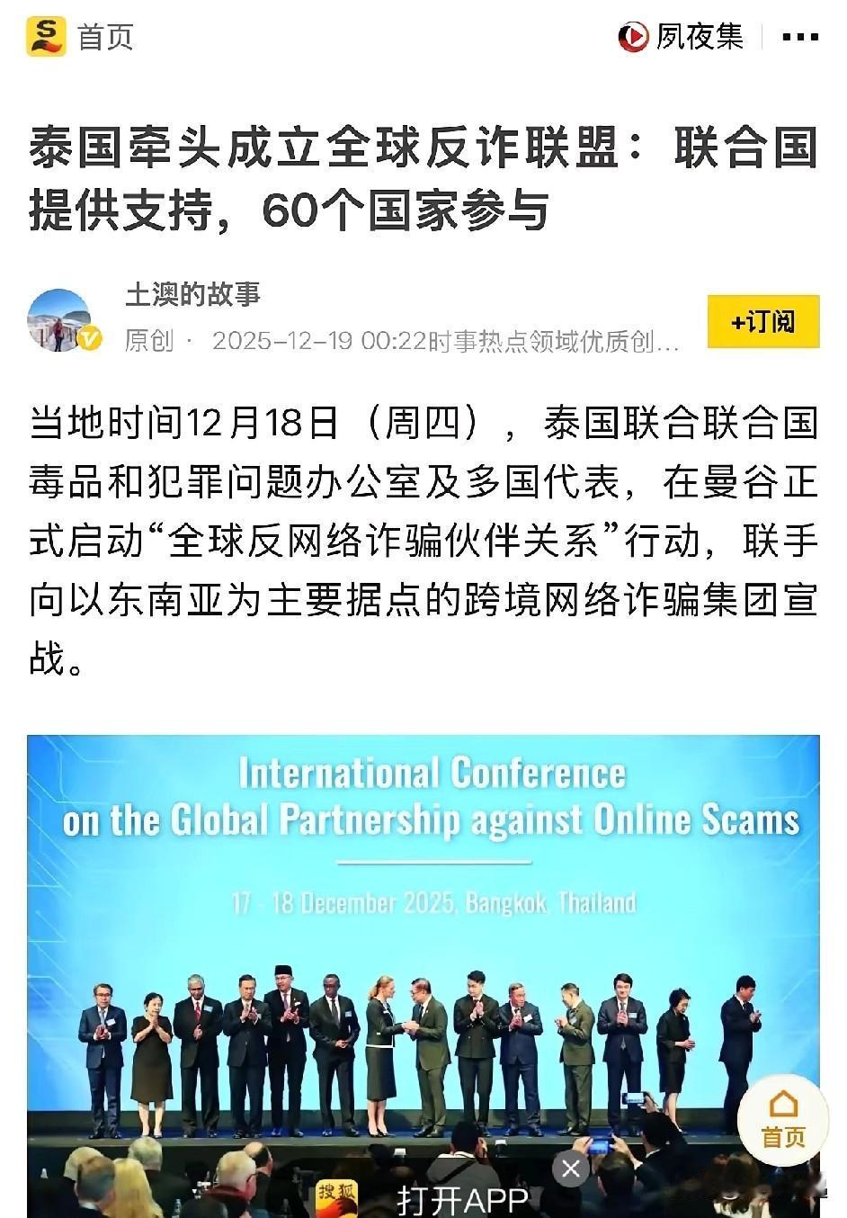 泰国牵头,把联合国毒品犯罪办公室+60个国家的代表全攒一块儿,官宣启动“全球反网络诈骗伙伴关系”! 翻译后就是:以前电诈团伙躲东南亚搞跨境诈骗,可能还能“打一枪换个地方”,现在好了,60国+联合国直接组队“剿匪”,相当于给这些骗钱害人的团伙焊死了“跑路通道”! 这哪是反诈啊,这是直接把电诈集团的“生存空间”按在地上摩擦!以后谁再敢在东南亚搞电诈,那真是捅了全球的马蜂窝了… 你觉得这波“天团联动”,能端掉多少电诈黑窝?