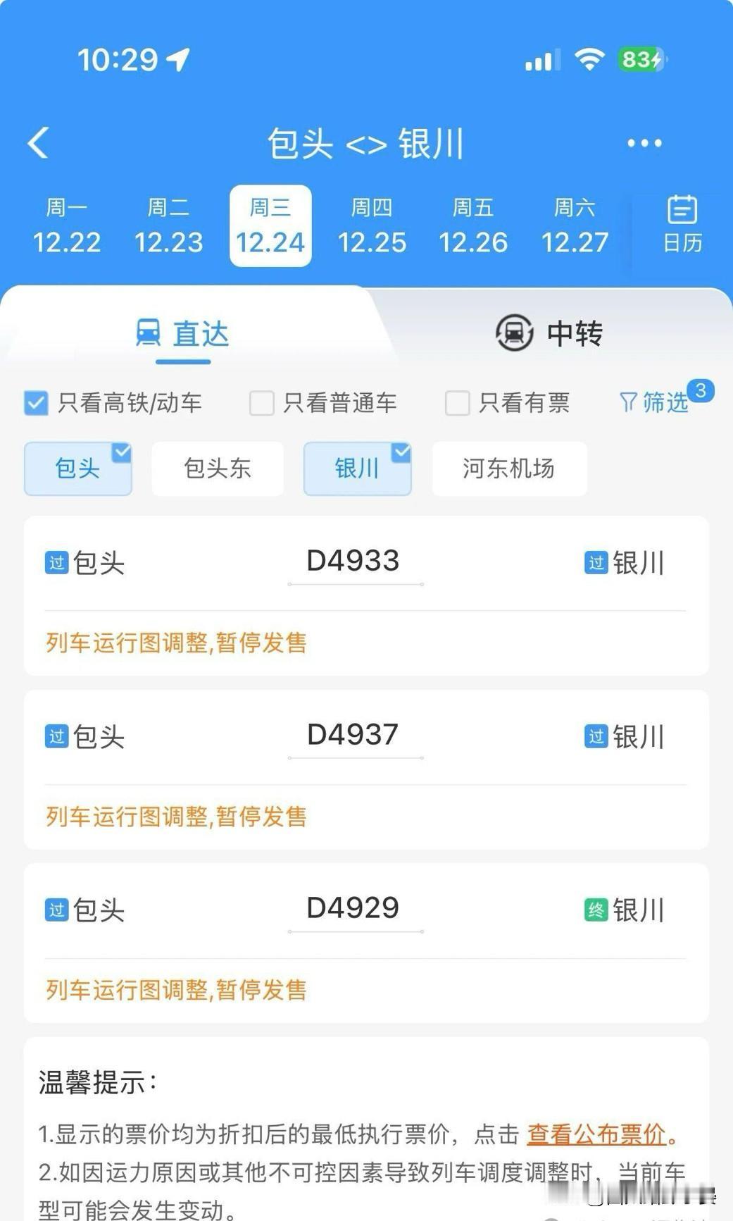 定了!包银高铁12月23日全线贯通,12306首发车次已上线,预计复兴号领衔开跑
