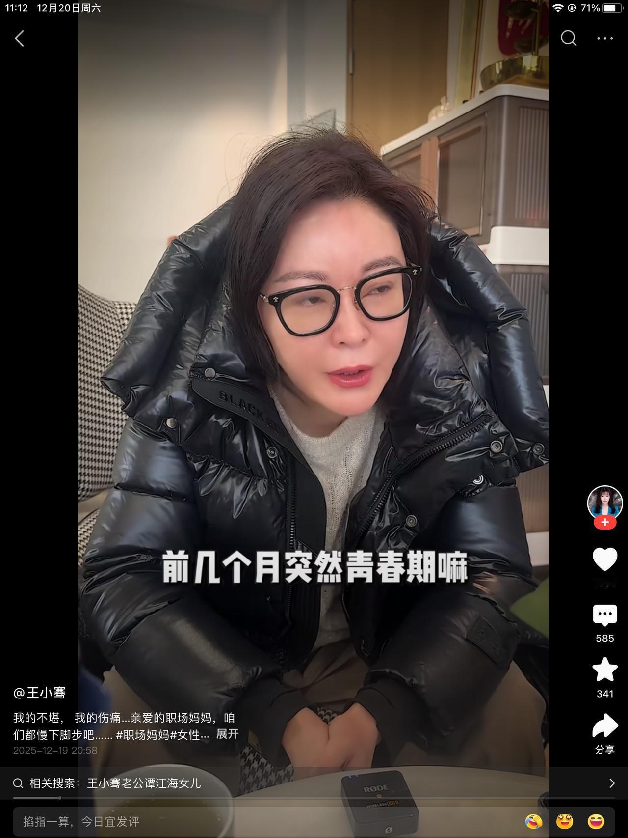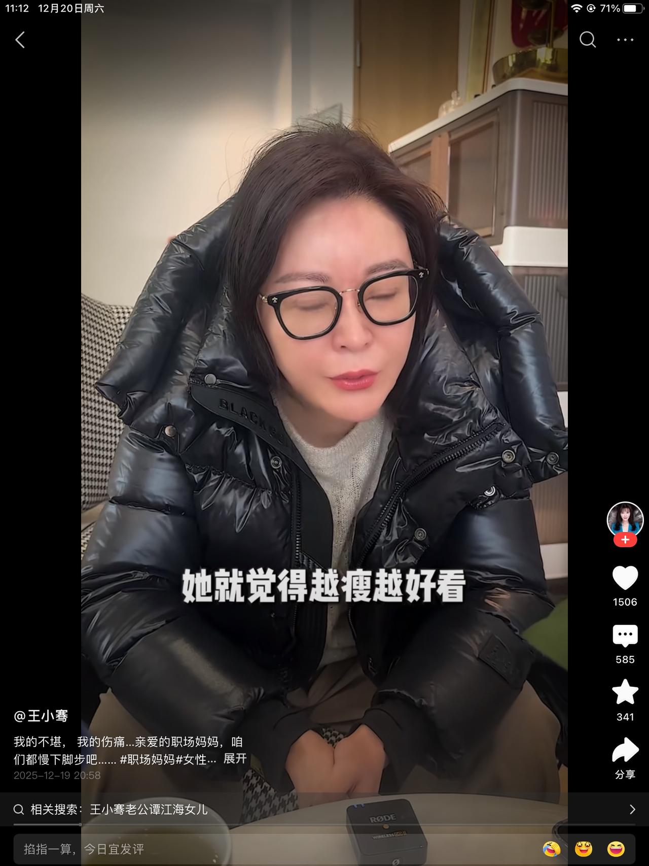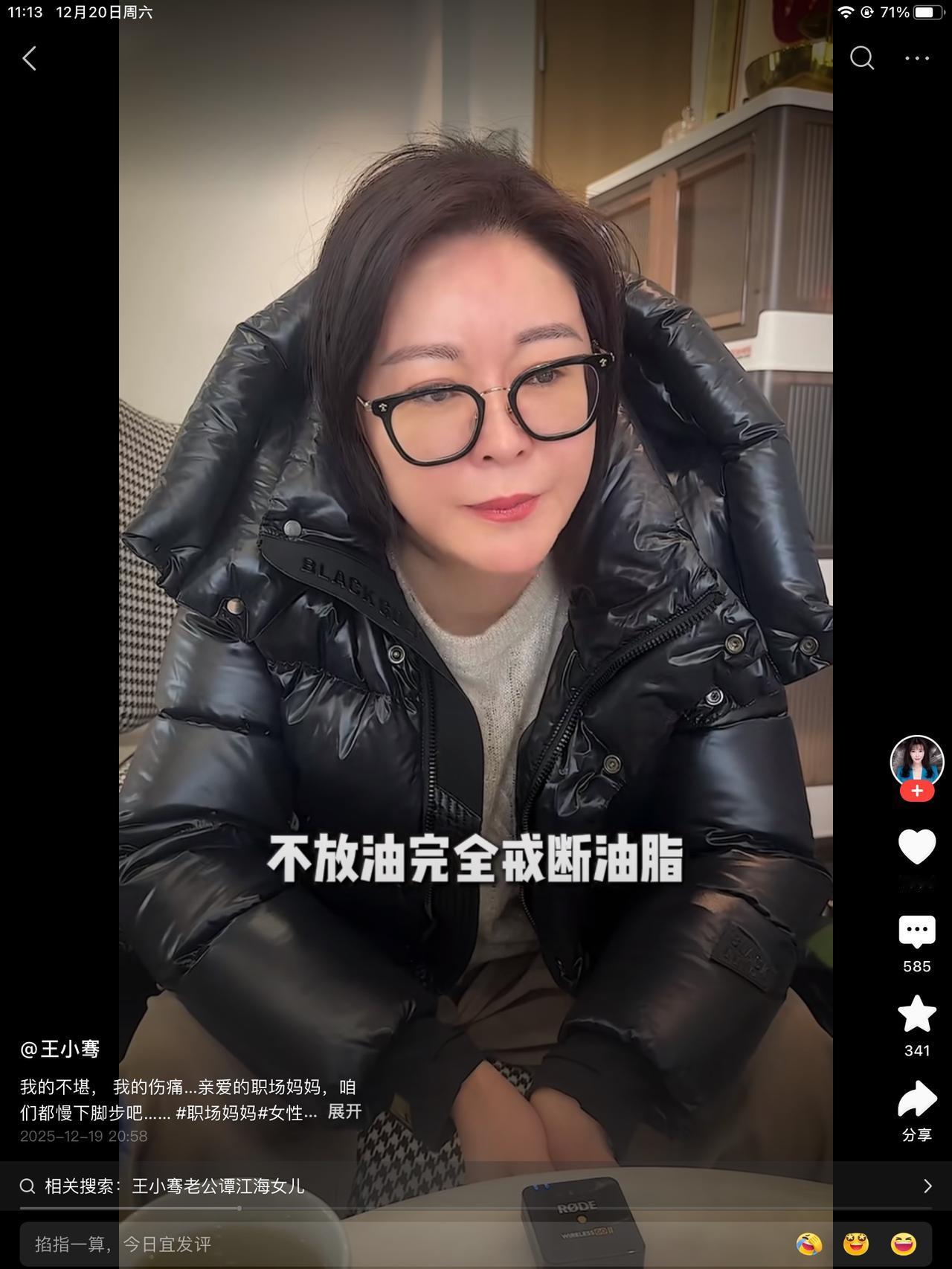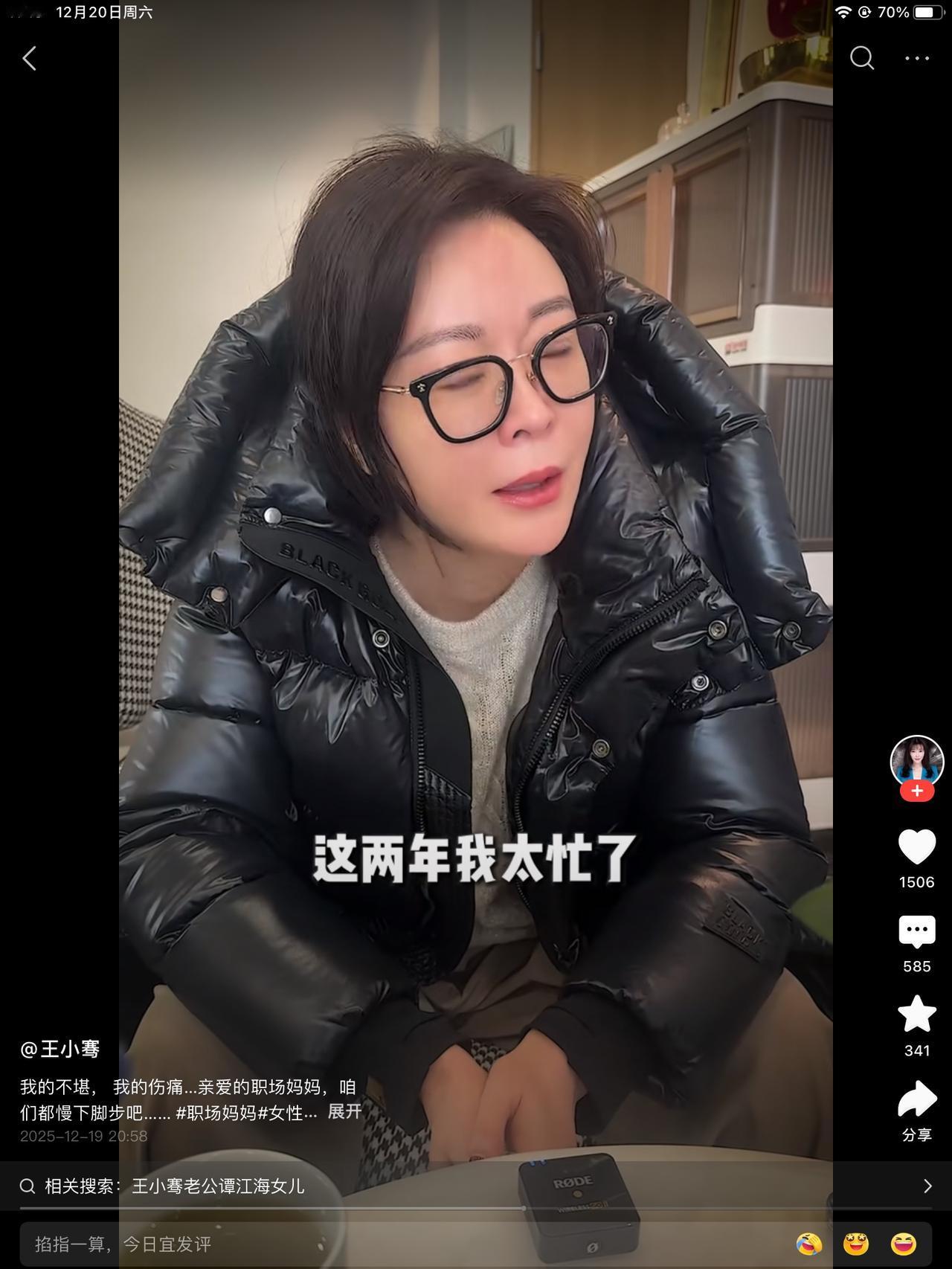 一看这谁啊,哭的稀里哗啦的,干嘛呀!挺年轻的样子啊,哭啥? 别急,这是王小骞,她有五十吧!结婚晚,一开始忙事业,不要孩子,生晚了几年。这不最近孩子青春期,只吃水煮菜,认为越瘦越好。基本不碰油脂。 这个饮食习惯对不对好不好我不知道,我馋,做不到。反正也挺佩服小姑娘的,那么好的家庭条件,吃啥吃不上啊,要这样折磨自己? 事情往往事与愿违。妈妈努力打拼,带货挣钱,哭的是挺真实的,带货也挺真实。17号有网友说还播一场呢! 人啊,都活的太被动了,不是说停就能停的。那是心肌受损,有感染,炎症,住院打点滴,心率都120了。我113那会儿都受不了,走不了几步路,喘,感觉一会儿死一会会生的,不真实。 当妈的都能继续直播,里头有心酸,有不舍,有遗憾吧! 其实在疾病面前,别的都是狗屎,可忽略不计。真的,你停下来,发现月入三千,真的够花。去泥地里滚几圈,接接地气儿,太舒服了。 哭唧囔囔的,说明你还没放下。既要又要的结果就是,一边扛着,一边撕裂你。真的,生活有一万种撕裂你的技巧,都在你不放弃的挣扎里孕育出来,越来越多。 钱是挣不完的,给别人留点机会。