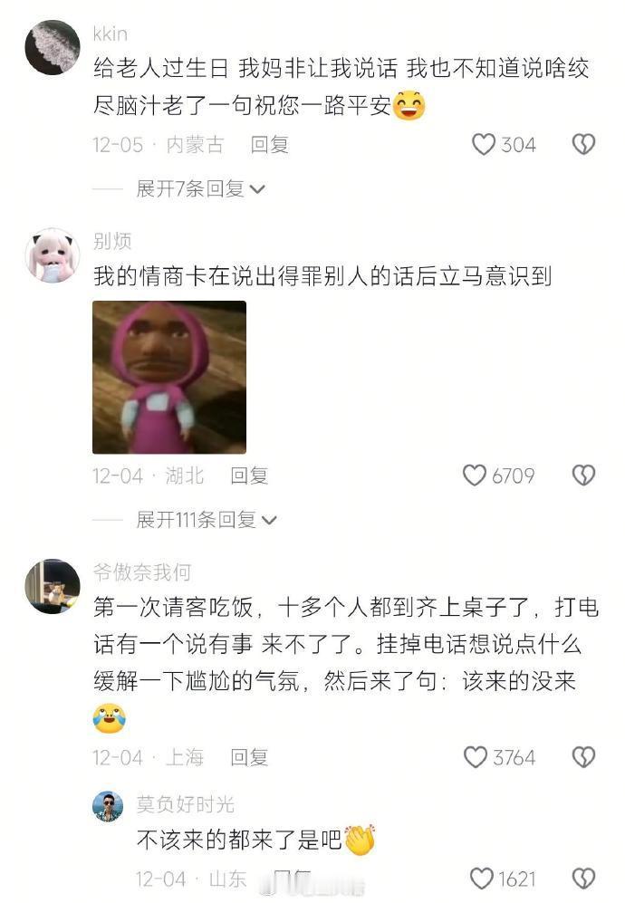 就这样绞尽脑汁说出一句情商巨低的话。。