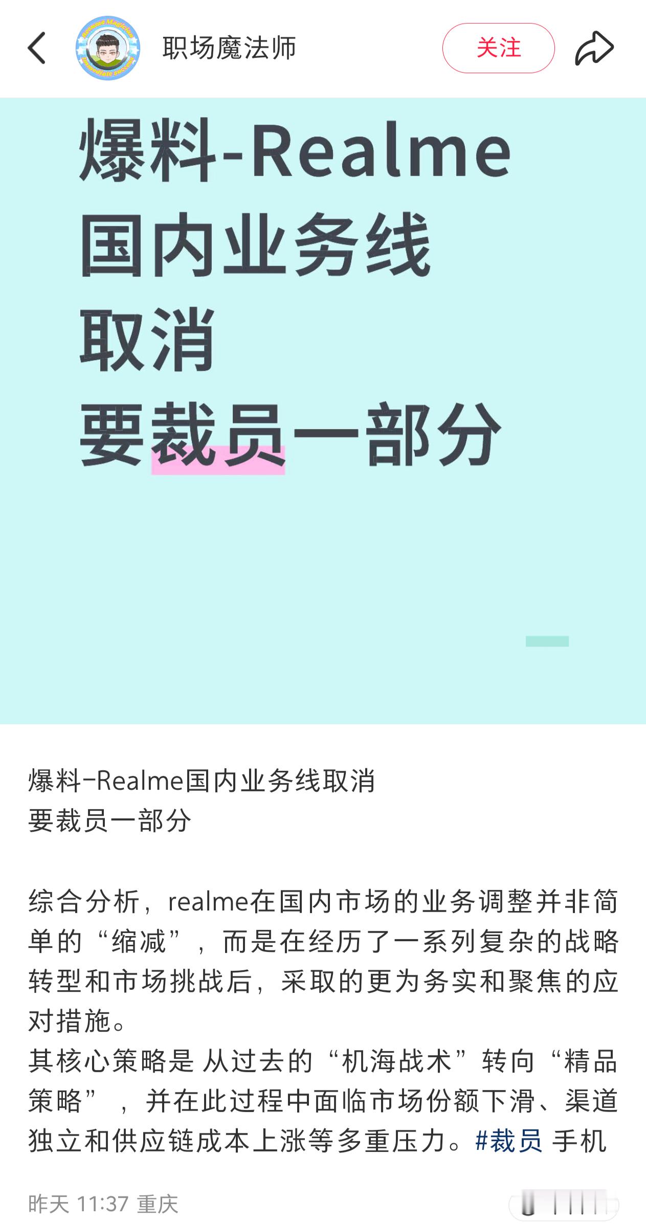 Realme产品还可以,但国内市场份额就是一直上不去,已经有人传要裁员了