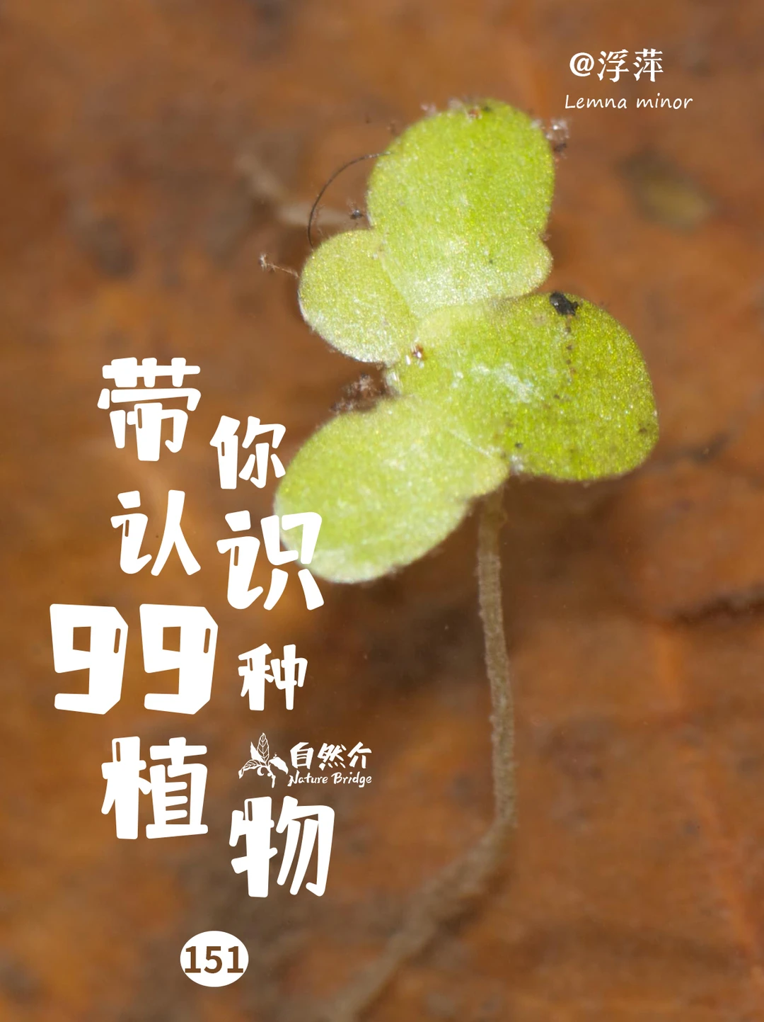 浮萍在世界各地的池塘、湖泊里都有分布,非常典型的浮水性湿地植物,也是全世界最小的开花植物。它们的生长速度极快,48小时内即可增加一倍的植株数量。在正常的情况下,它们主要会聚集在靠近岸边的水面上。然而,当水里有过多的营养物质(比如化肥),或者没有食草动物控制的时候,就会异常地大量爆发,把整个水面完全覆盖住,导致水中缺少阳光和氧气,最终使水生生物全部死亡。然而责任不在浮萍,实际浮萍是有净化湿地、供养湿地生态系统的作用的。所以我们真正应该做的是从源头上减少对湿地的污染和破坏。