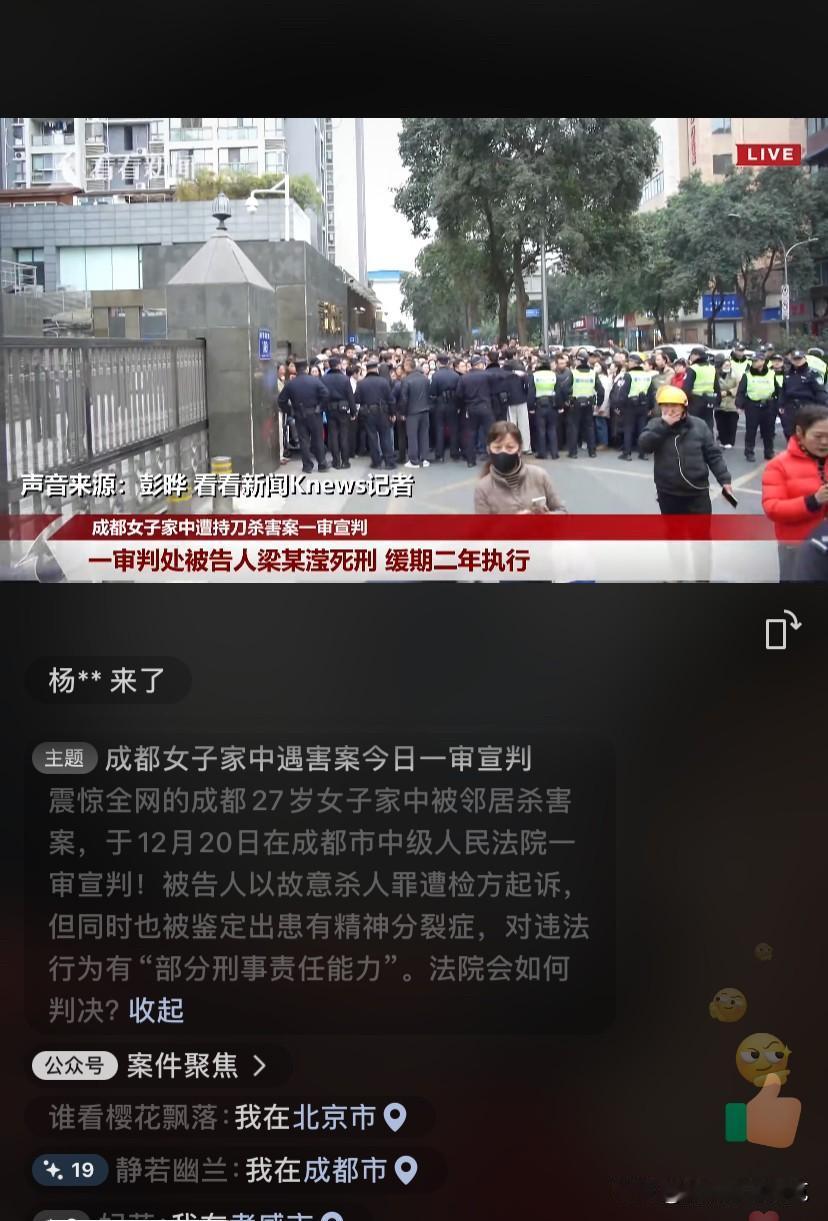 成都女子家中遇害案一审宣判,被告人梁某滢被判处死缓。 出乎意料,又在意料之中!我认为不管是精神病还是健康 ,杀人偿命是必须的 。你的精神有问题却让受害人来承担你造成的后果? 精神病对社会有啥价值和贡献?并且随身带刀,并且找上家门,属于主观上有判断能力,这种直接枪毙!除了危害再无益处,这就相当于把一条疯狗放在小区里到处游走,任何人都有可能被随时咬伤或咬死……