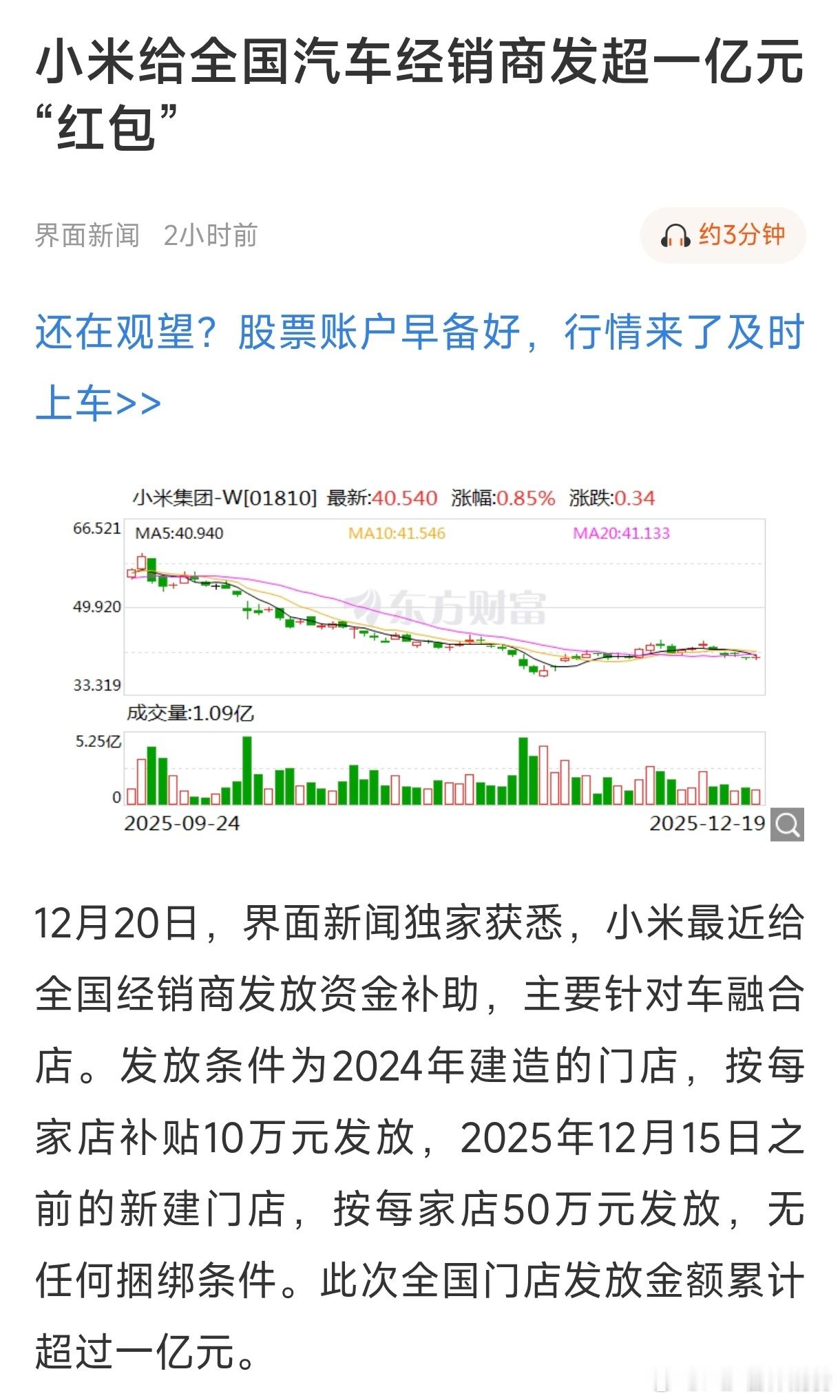 小米给汽车经销商发超一亿元红包怎么有一种当初奥迪安抚经销商的味道正面:共富贵负面:颓势已现