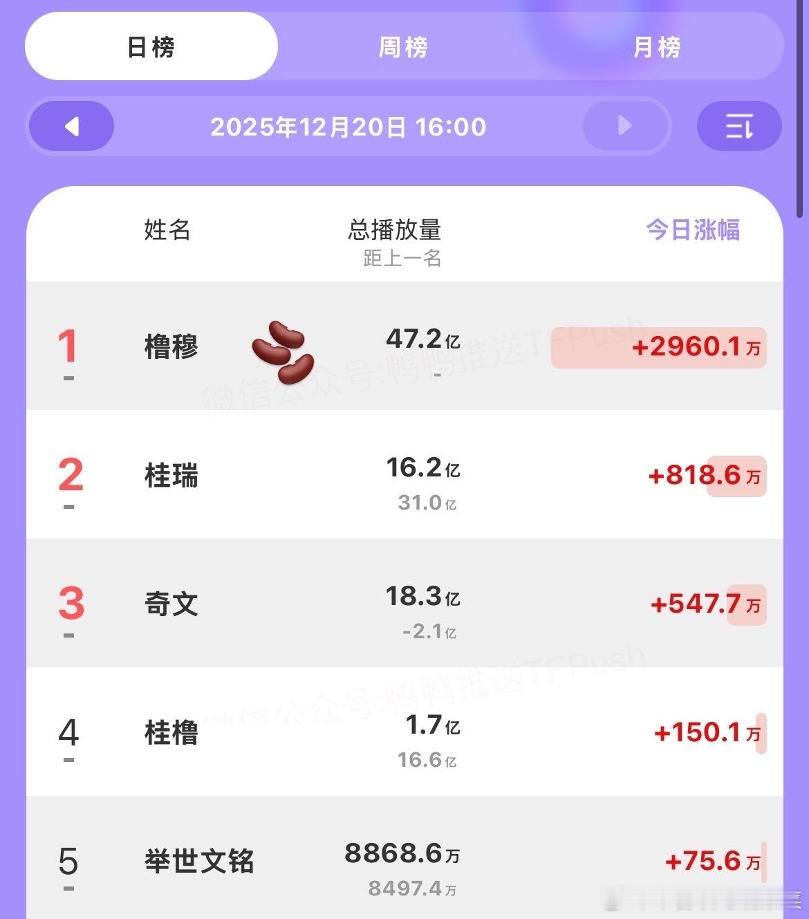 tg新歌出来后xcpt当日cp热度排名依然是橹穆奇文桂瑞断层前三