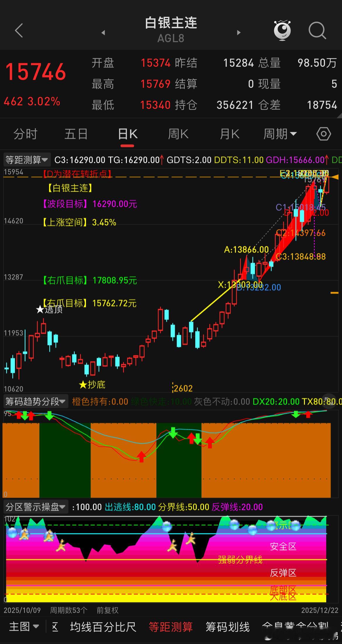 金银多头依旧强势,不要不信邪去高空,你如果错过接多的车次,但不要觉得价格高了就去抢高空,见顶与见底是一样的,需要时间去磨盘,没有出现信号前不要提前试仓抢进,不然容易被市场闷杀,见顶不出现至少两根日中阴都不算短期阶段性偏弱。没赶上低位接多的就多看少动,不要试图去挑战金银金属类低多主节奏,当下沪银的涨幅已经超出很多人的认知,既然不在你的认知范围就不要去凑这个热闹了,看过我动态的应该知道,我已经不建议大家再去放仓位了,看不懂的时候就少挑战自己的认知。金银价格一起涨黄金沪银期货