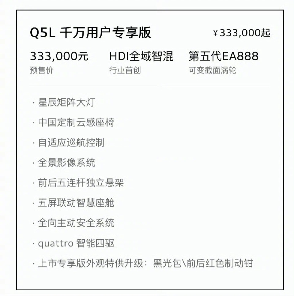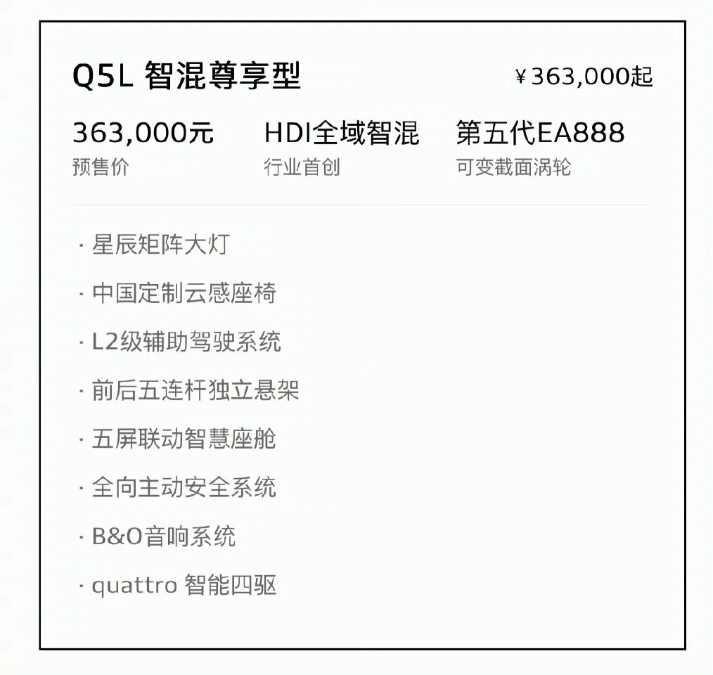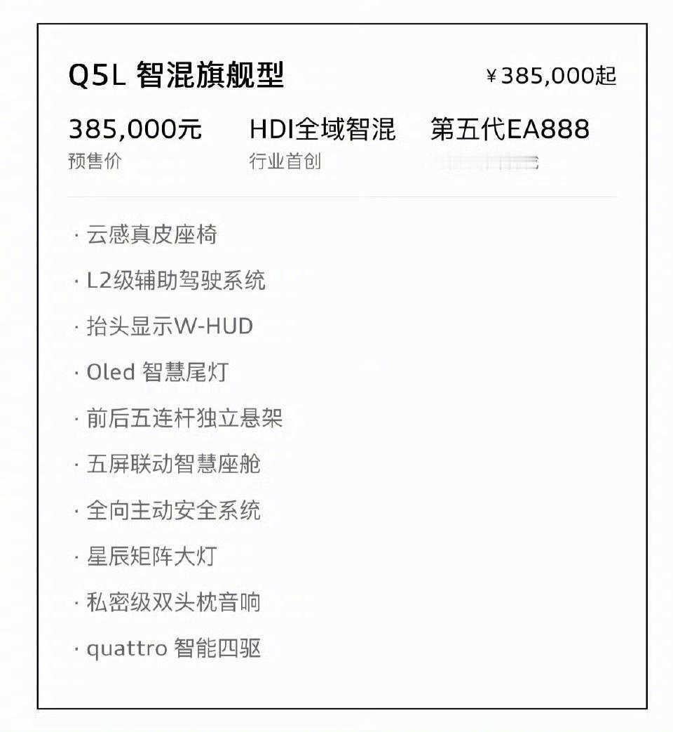 全新Q5L预售,31.3万-38.5万。换了全新的外观内饰,也上了智能辅助驾驶,大家觉得怎么样? 车帮大家试过了,视频后面发,记得来看。