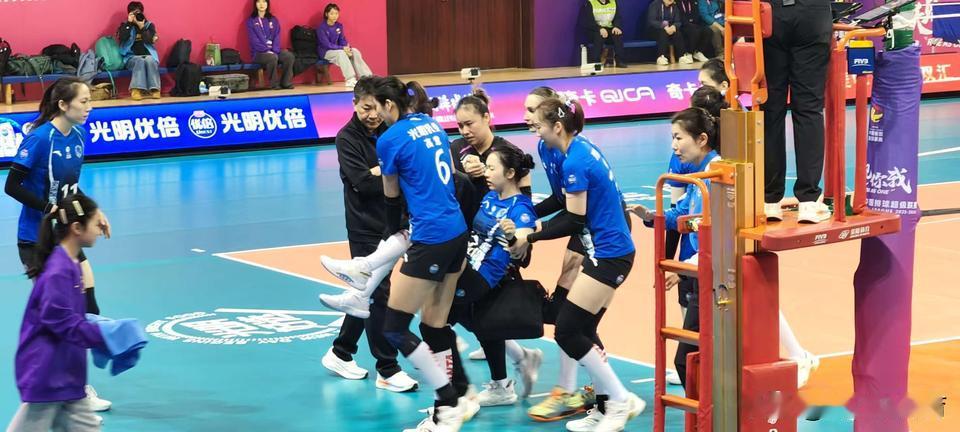 上海女排二传黄欣悦受伤离场,上海女排3-1力克河南保持不败。主教练蔡斌再次目睹本队二传崴脚离场,不过黄欣悦是与本队副攻高意发生身体接触而受伤崴脚离场,这也导致上海女排输掉一局。值得一提的是,河南队接应段梦可表现出色,这位小将身体素质很好,值得培养。