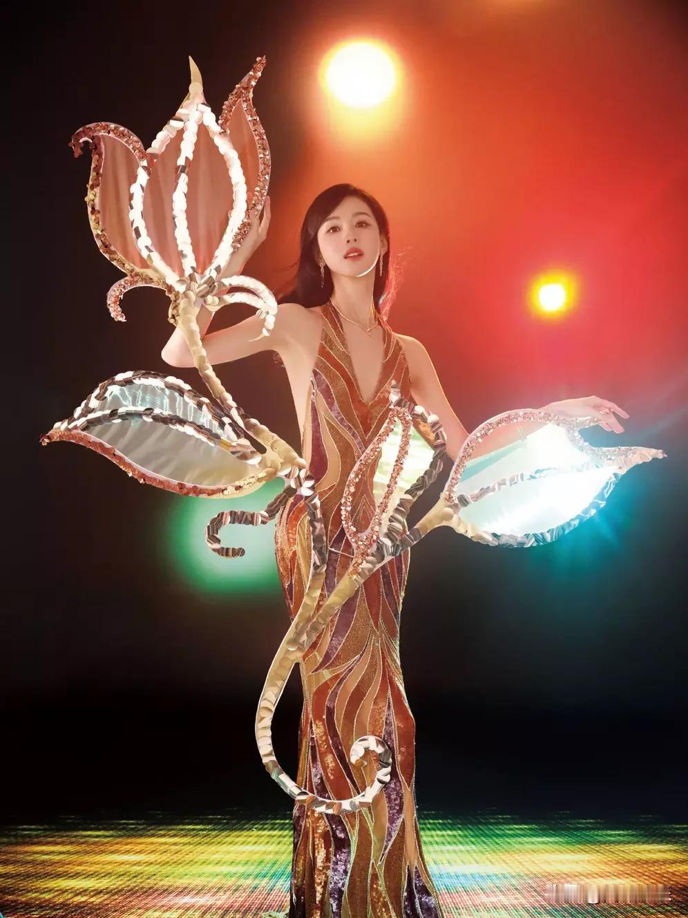 20日,工作室分享了一组陈都灵美图。图中,她穿鎏金亮片挂脖裙,双臂环抱抬眸,霓虹