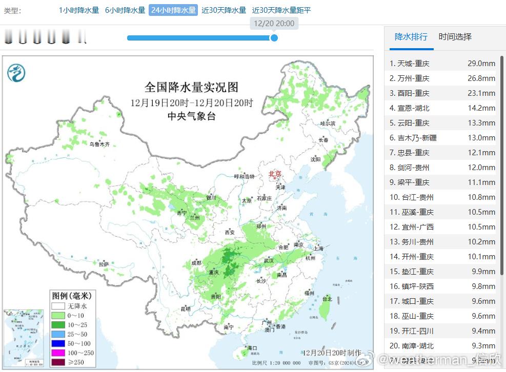 【雨雪】昨晚到今天,重庆一带降雨最强,天城和万州均出现大雨。新疆青海甘肃内蒙古黑龙江吉林部分地区出现降雪。今晚到明天,南方降雨沿着长江向东推进,明天白天陆续结束。北方地区明天降水不多,主要是新疆西部和北部有降雪,新疆西南部局地有大雪-暴雪。22-24日还有高空槽携带冷空气东移,配合暖湿气流导致雨雪。新疆北部、甘肃西部22日降雪增多。23日东北也有大范围降雪,其中,黑龙江中部、辽宁东部等地部分地区有大到暴雪。23日贵州到山东多地将出现降雨。24-25日降雨南落到长江中下游沿线到江南一带。26-27日我国大部地区处于高空脊或脊前西北气流控制下,天气晴朗为主,降水稀少。不过图7预报,全国无降水的可能性不大。山东半岛有可能吃到冷流降雪,台湾岛东部和海南岛东部在低空东北气流影响下,也可能出现降雨。但是26-27日很可能会看到单小时降水榜,凑不齐10个站的情况。