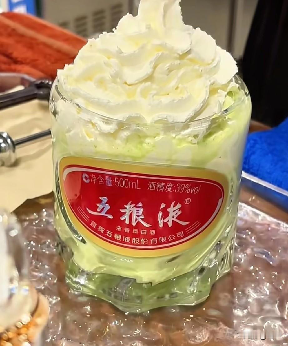 奶茶+五粮液,微醺还不贵,终于做成了最爱你的模样哦! 在宜宾的街头撞见这份惊喜,五粮液酒瓶摇身变成奶茶容器也太会了! 清冽的淡绿色茶底混着丝丝清甜,像是把蜀地的春景揉进了杯里,顶部绵密的奶油顶又添了几分温柔。 抿一口,奶茶的甜润和若有似无的酒意撞个满怀,这独一份的川式微醺,是属于宜宾的浪漫小心思呀。
