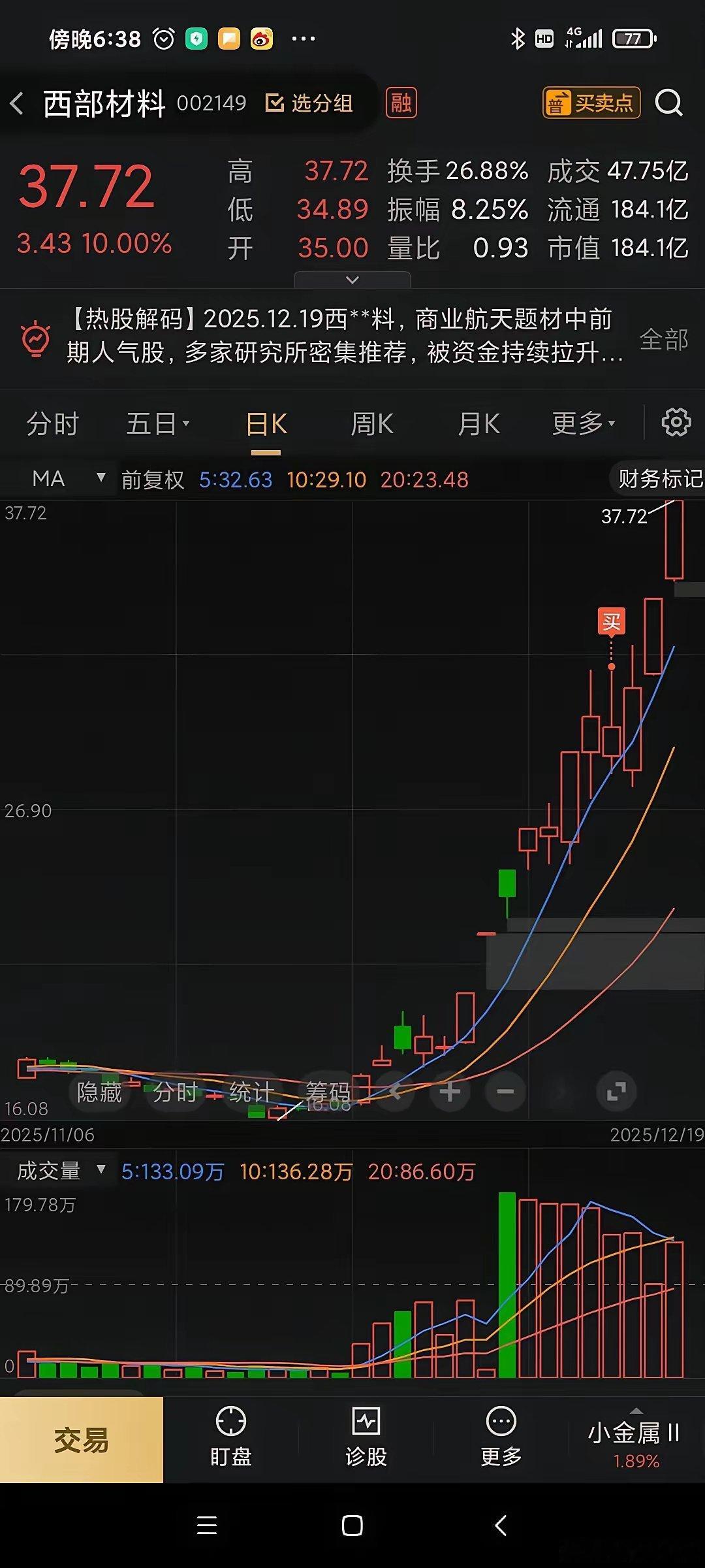 商航众神齐飞翔,海西三子遭暗算又到了一周总结编,先回顾一下周初南哥的总指导思想,一周基本躺在商业航天的温柔乡里,15日确认平铺众核心,买跌卖涨,尽管外面诱惑很多,什么科技,锂矿,金融,核电,犒赏等等,一天一个热闹,我们均不为所动,做交易就必须专注,不要有吃着碗里却盯着锅里的思想。商业航天越来越有赛道的格局,诸位大神良性竞争,人人都有可能成为黑马。本周西部,再升和航电子脱颖而出,加入头部权力圈,从原来四大天王再扩容,成就了目前航天七星女。因为没有绝对的王牌,节奏就要把握好,分批操作尤其重要,+5开始卖,越涨越要卖,-5开始吸,越低就越吸,量化当道时代,柚子们那套追涨打板应该丟到垃圾桶了。目前来看七星女正处于展翅齐飞的格局,节奏感不好的朋友,大可采用另一种消极的应对策略躺平,以十日线为生命线,破位者淘汰就是。收盘前集体投河事件,网上众说纷纭,南哥认为原罪都是涨得太多了,所以盘中置顶了合富的异动风险,醒目的朋友都是在31元附近收割了胜利成果。其实这就是套路,往东百来看再明显不过了,无论十天异动,或者三十天的异动,周五当天都是跳出三界之外,大家都以为又要升天开启新征程了,主力正是利用到这种从众心理收割小散,记住所有的高标票都是死于一致。对待这些绕异动的票,我们的策略是要学会猥琐点,提前低吸潜伏,等待出监管那天有众人来抬矫,应对的主动权则完全握在自已的手里,国晟可以继续关注。这些投河个体统一特征,都是贴着绕异动的标签,也许有错杀,这种急跌不一定是坏事,没有及时出逃的朋友也无需过份懊恼,下周一还有自我纠正的机会,那些满嘴跑火车的言论不可靠,说还要跌多少个一字,更加是胡言乱语,恰恰我们需要重视可以快速反包,及时修复走出背离的个股,历史上的成功案例很多,东方知造去年11月26日的盘面如出一辙,有兴趣的朋友可以翻来研究一下。另外同为绕异动的个股,它们在做自由落体,再升却是完全不受影响,还反向上拉,走出背离行情,这绝对是一个不可忽视的信号,懂得自然懂。
