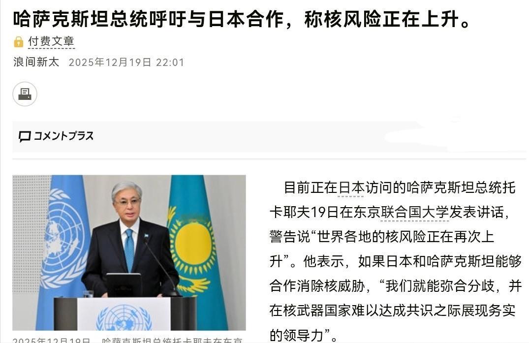 托卡耶夫这一番讲话,高市早苗估计脸上都挂不住了!托卡耶夫黑不提,白不提,偏偏在日本国内传出要拥核的时候,托卡耶夫呼吁要与日本在消除核威胁方面进行合作! 12月20日,根据日媒报道,正在日本访问的哈萨克斯坦总统托卡耶夫在日本的一所大学发表讲话称,世界各地的核风险正在再次上升,如果日本和哈萨克斯坦能够合作消除核威胁,我们就能弥合分歧,并在核武器国家难以达成共识之际展现务实的领导力。 托卡耶夫的这番讲话,堪称给热脸贴冷屁股的日本政坛来了记精准的一击,要知道就在托卡耶夫到访前一天,也就是12月18日,高市早苗首相官邸一名负责安全保障政策的高级官员,刚在非公开采访中抛出了“日本应该拥有核武器”的惊人言论。 尽管事后补了句“这是个人见解”“不像买便利店商品那么容易实现”,但这番话绝非无心之语——毕竟这位官员的核心工作就是给高市早苗提供安保建议,此前高市本人就曾呼吁重新审视“非核三原则”中的“不引进核武器”条款,国会质询时被问是否保留“坚持非核三原则”措辞,也刻意回避不表态。 很明显,这是高市政权在试探国内对“拥核”的接受度,可没等试探出结果,托卡耶夫就来了句“呼吁日哈合作消除核威胁”,这时间巧得让人不得不怀疑是故意内涵。 都知道日本向来把“世界上唯一遭受原子弹轰炸的国家”身份当护身符,动辄拿“核受害者”标签博取同情,还靠着“非核三原则”树立和平国家形象,可托卡耶夫的提议,直接把日本架到了进退两难的境地。 毕竟,“非核三原则”自1960年代确立以来,早已是日本安保政策的核心支柱,1976年批准《不扩散核武器条约》后,“不拥有、不制造”更是具备了国际法约束力。 现在托卡耶夫主动提出合作消除核威胁,完全契合日本长期标榜的“无核武器世界”理念,日本要是反对,等于直接打自己的脸,承认之前的和平人设全是伪装;要是沉默,又没法给国内右翼势力交代,更坐实了“拥核心思”被戳穿后的窘迫。 更有意思的是,高市身边人的拥核言论已经引发了轩然大波,不仅在野党强烈谴责,连自民党内部都出现了制衡声音——四次出任防卫大臣的中谷元都公开批评这一言论“离谱”,要求高市首相出面应对。 民调显示,虽然近四成民众对修改“非核三原则”持开放态度,但仍有七成以上民众坚定支持这一原则,尤其是广岛、长崎等核爆受害地区,反核情绪根深蒂固,托卡耶夫此时抛出这个提议,无疑是给日本的混乱局面火上浇油,相当于直接告诉国际社会:看看,你们标榜的“核受害者”,现在内部都在讨论拥核了,我这是帮你们提醒一下而已,这波操作说是给日本右翼泼了盆大冷水,一点都不夸张。 至于托卡耶夫是无心一说还是精准卡点,或许只有他自己清楚,但从哈萨克斯坦的外交立场来看,大概率是顺势而为的理性选择,中亚国家向来注重在大国间保持平衡,不会轻易被日本拉拢选边站队,托卡耶夫此次访日更多是为了经济合作,而非卷入地缘博弈。 但客观上,这番讲话确实起到了“四两拨千斤”的效果,既彰显了哈萨克斯坦作为曾经的核国家、主动放弃核武器的负责任态度,也戳破了日本的虚伪面具,而中俄两国对这一表态肯定会举双手赞成,毕竟维护地区无核化是中俄的一贯立场,托卡耶夫的提议正好契合了这一诉求,也给试图突破核禁区的日本敲了警钟。 说到底,托卡耶夫的讲话之所以让高市早苗挂不住脸,核心是戳中了日本的软肋,既要当和平使者捞取道德资本,又想借着地区安全局势变化突破核限制,这种左右摇摆的投机心态,终究会被戳穿。 日本应该清楚,“核受害者”的身份是警示而非特权,“非核三原则”是底线而非束缚,试图借拥核谋求地区霸权,不仅会遭到国内民众的反对,更会引发周边国家的警惕,日本如果真的珍视和平,就该响应托卡耶夫的提议,切实履行《不扩散核武器条约》义务,而不是放任国内拥核言论泛滥。 否则,再完美的和平人设,也会在一次次的投机试探中彻底崩塌,最终沦为国际社会的笑柄。