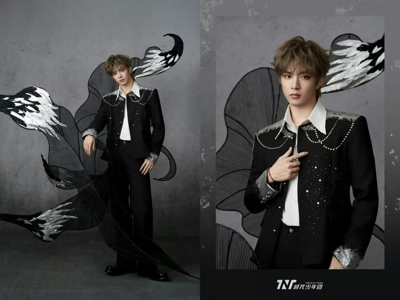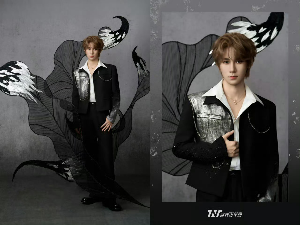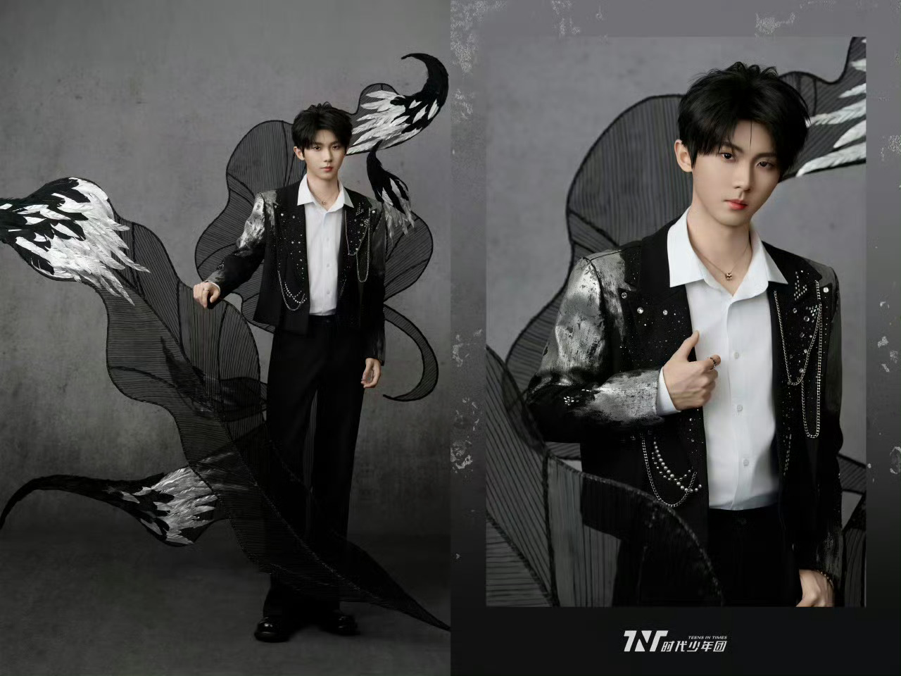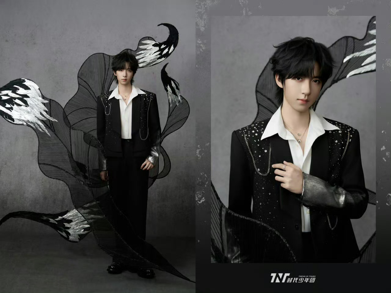 时代少年团央视鸿蒙星光盛典造型出图,黑银色暗系穿搭,佩戴CHAUMET高级珠宝,精致冷冽🧊