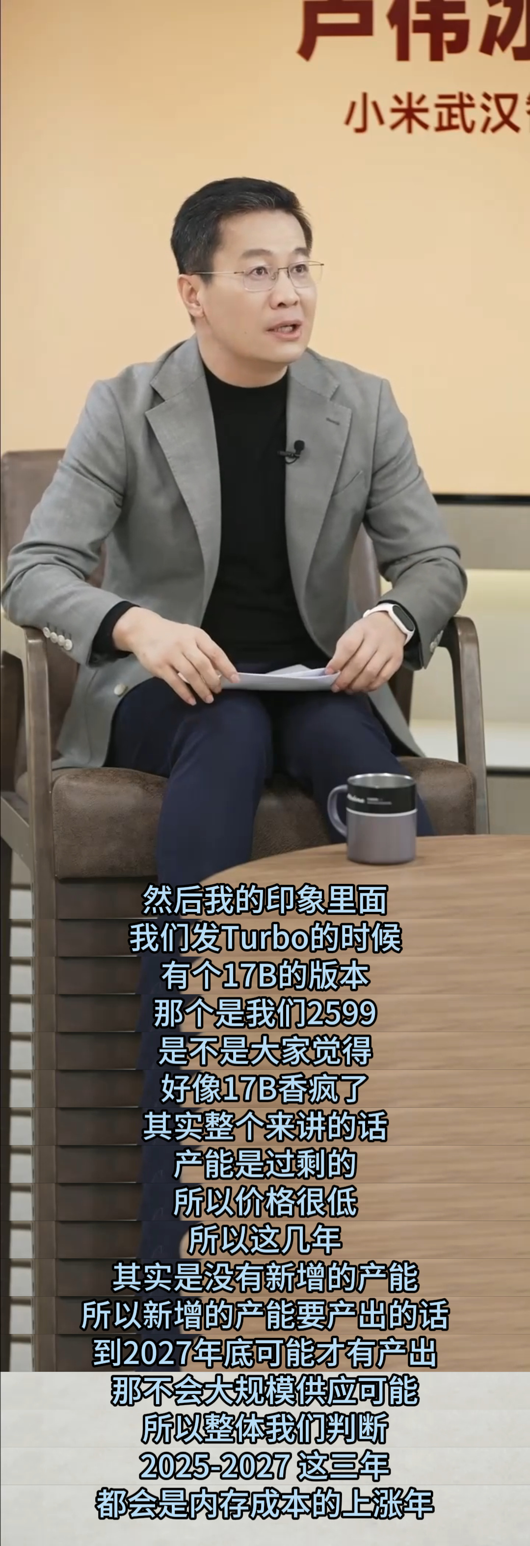 卢伟冰确认小米17Ultra涨价 小米17U涨价这事真不用太意外!26年旗舰主摄普遍缩水,也就它还坚持给1英寸Lofic大底+2亿APO长焦,甚至补了3-7倍连续光变,这配置直接拉满独一份,影像机皇提前锁定没跑。看网上放的烟花样张就懂了,大光比场景下高光不溢、暗部还清透,新一代“夜神”名不虚传,这可是大底+高动态范围堆出来的硬实力。而且现在内存价格疯涨,Counterpoint都预测新机普涨7%,光内存成本就得多500,友商新机都涨了10%,12+256版6999真挺良心。徕卡APO镜头成本是普通版三倍,还首发新芯片、提前三个月卡位,不降配反而堆料的机皇,涨价真合情合理。高端用户买的就是独家体验,纠结价格的其实可以看看Redmi,17U本来就不是给性价比党准备的,这波创新和配置,值这个价~