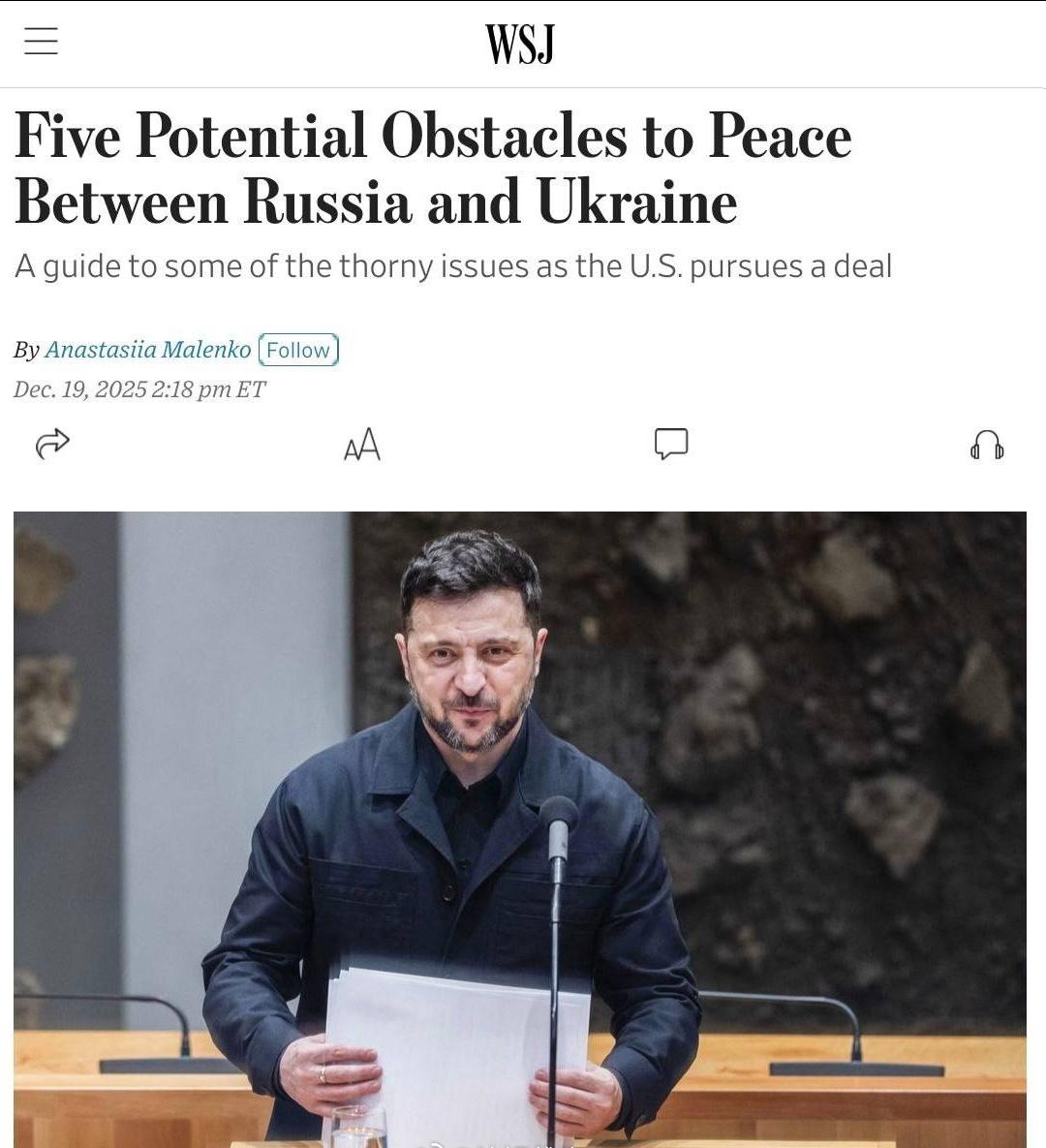 WSJ报道称,乌克兰和平进程面临五大障碍: ▪️领土问题。这是关键且最敏感的问