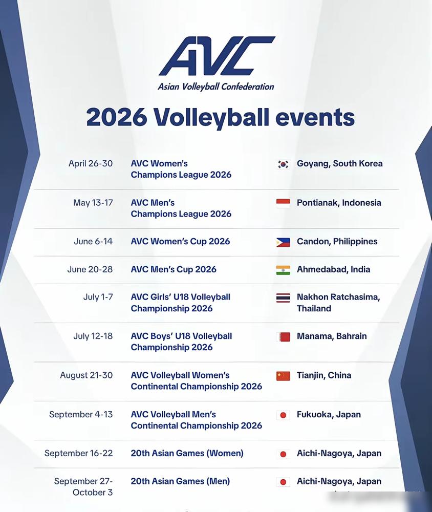 中国🇨🇳女排重要利好! 亚洲排球联合会发布2026年赛事公告其中最重要的